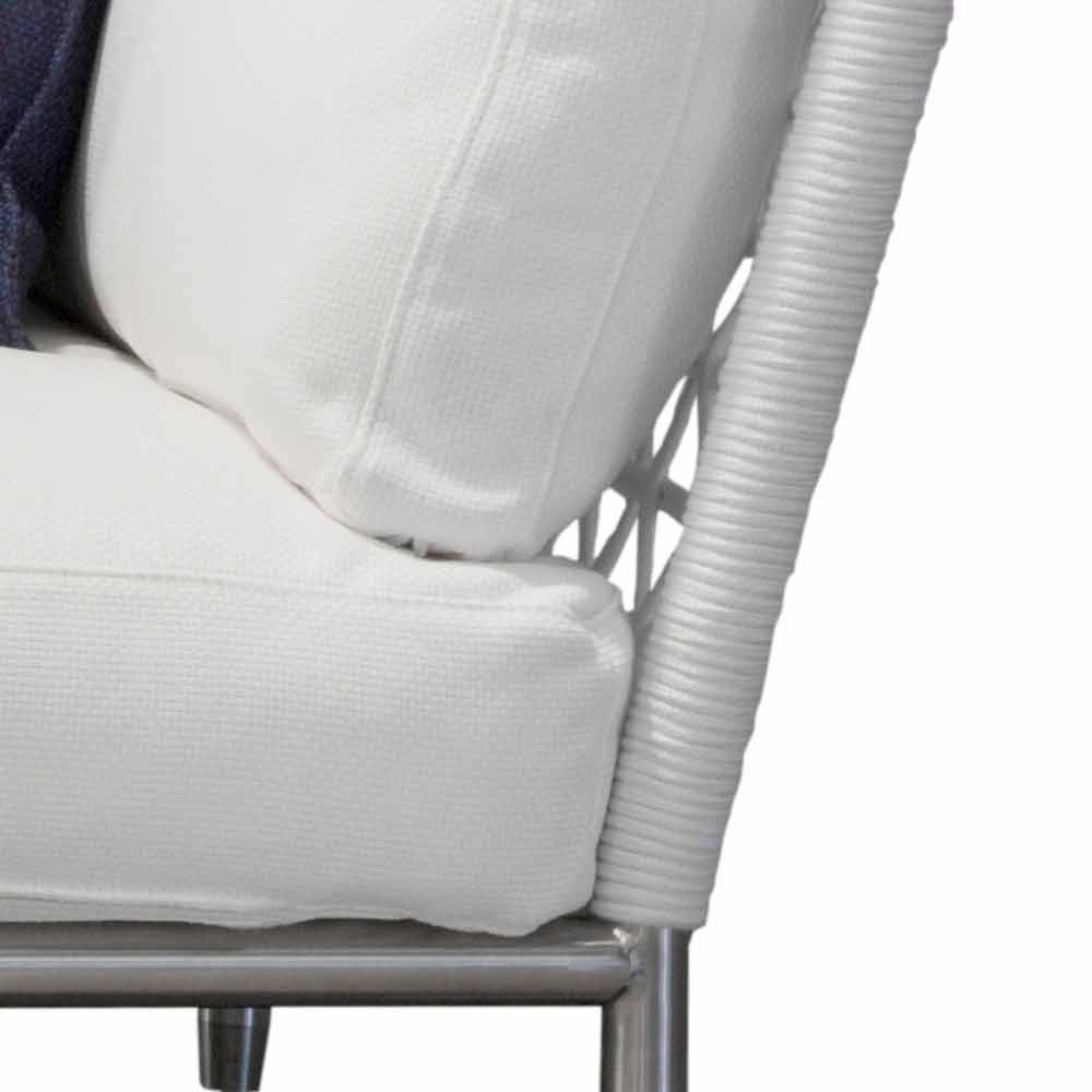 hynder med drypolstring og aftageligt betræk i udendørs stof. De brudsikre fødder er lavet af hvid teflon.