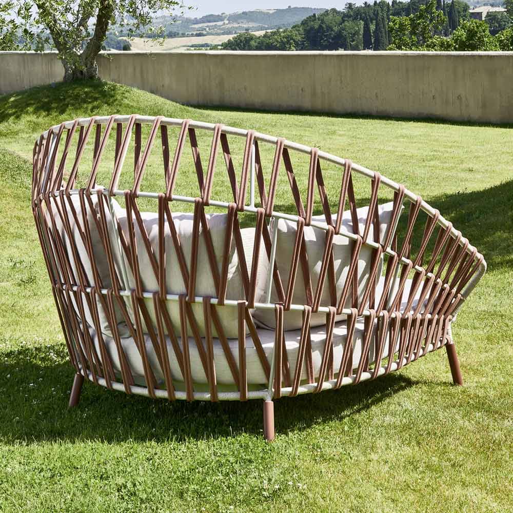 Havesofa med malet aluminiumsstruktur og vævet ryglæn Made in Italy.