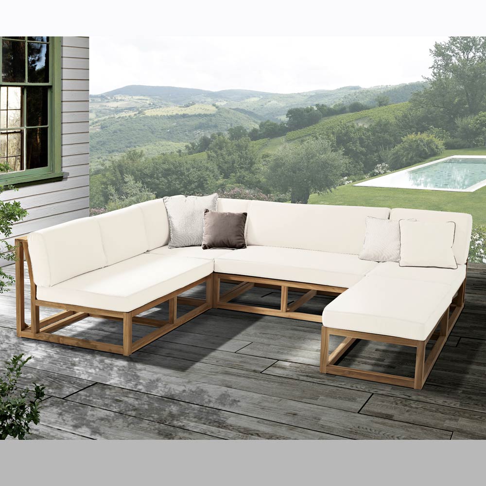 teaktræ fra kontrollerede og bæredygtige skove (INDONESIANLEGALWOOD). Teak er klassificeret som det mest værdifulde træ, der findes til udendørs møbler. Det er ekstremt holdbart, stabilt, modstandsdygtigt over for atmosfæriske påvirkninger, svampe, parasitter og insekter. Det indeholder høje niveauer af naturlige olier, der gør det modstandsdygtigt og begrænser absorptionen af fugtighed. Med tiden har teakmøbler, der udsættes for sol, regn, fugt osv. en tendens til at blive sølvgrå i farven: Det skyldes en overfladeoxidationsproces, der naturligt beskytter træet. Denne proces er rent æstetisk og skader ikke træets struktur eller kvalitet. Udseendet af olie på overfladen af teakmøbler er en naturlig proces: olien kan komme ud i løbet af de første par måneder, mere eller mindre konsekvent afhængigt af det miljø, hvor møblerne er placeret. De naturlige olier i teak er det, der gør det til det bedste træ til udendørsmøbler.