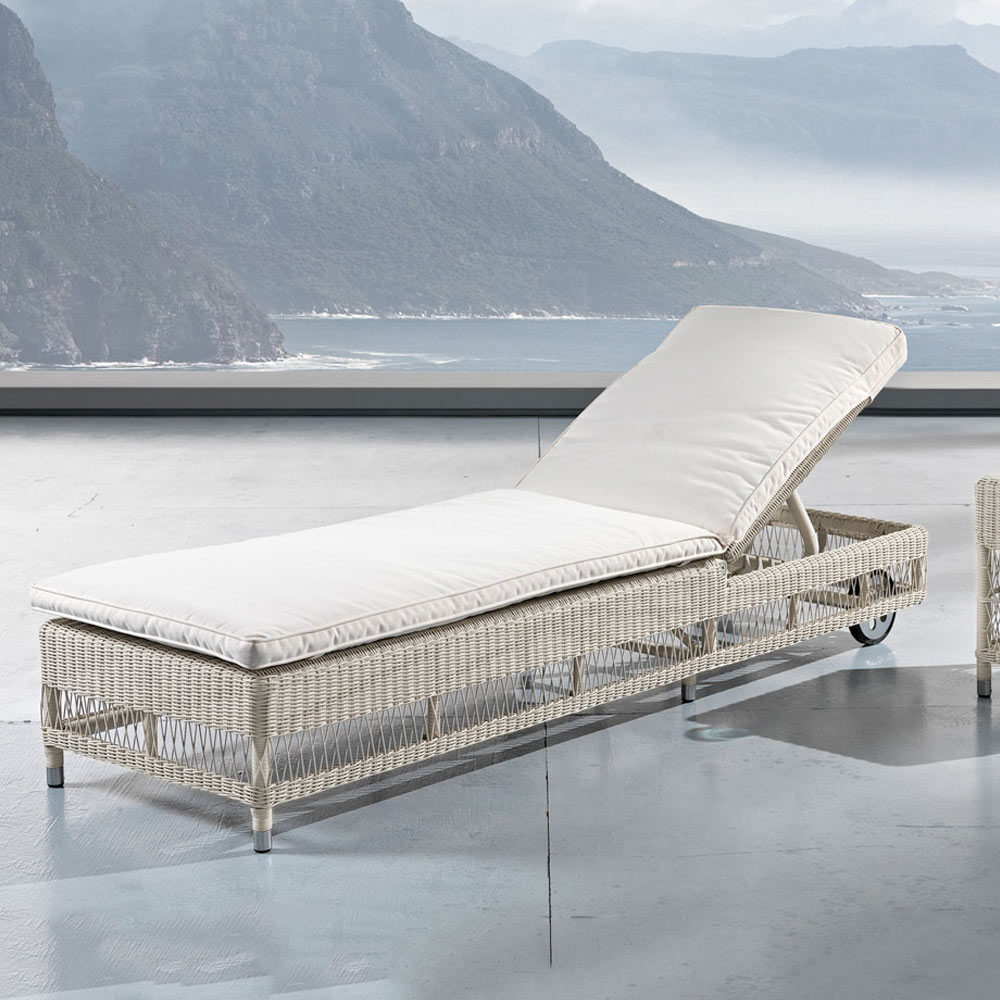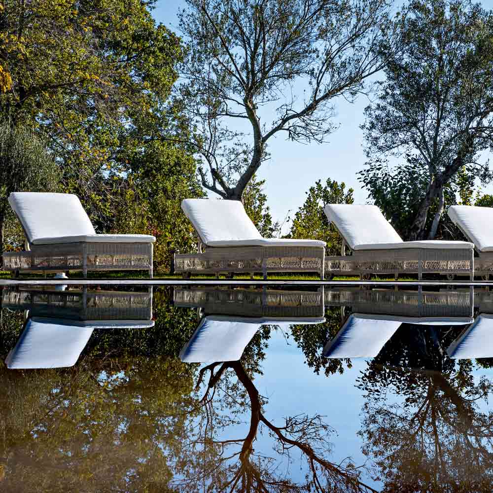 Den vævede stil er raffineret og delikat og sammen med den meget høje kvalitet af materialer og dens afgørende former gør denne solseng perfekt til at indrette interiører og eksteriører, både private og kontraktmiljøer såsom terrasser, verandaer, haver, men de finder også en perfekt placering ved poolen.