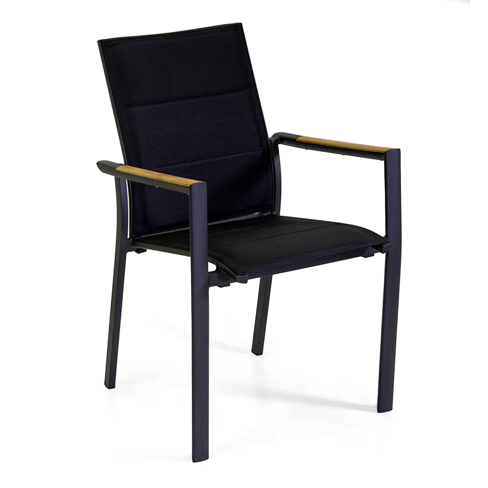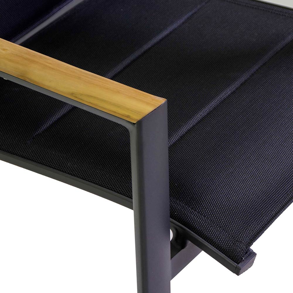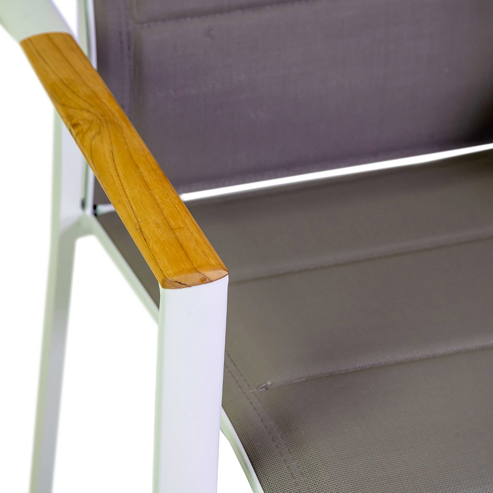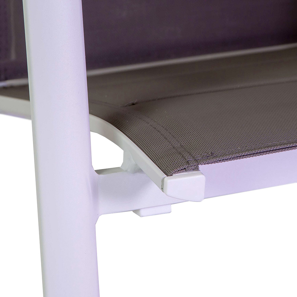 Denne havestol kombinerer moderne elegance og uovertruffen komfort , ideel til ethvert udendørs rum. Den har et aluminiumsstel, der er kendt for sin holdbarhed og lette vedligeholdelse, kombineret med et textilen-sæde og ryglæn, der garanterer komfort og modstandsdygtighed over for atmosfæriske stoffer.