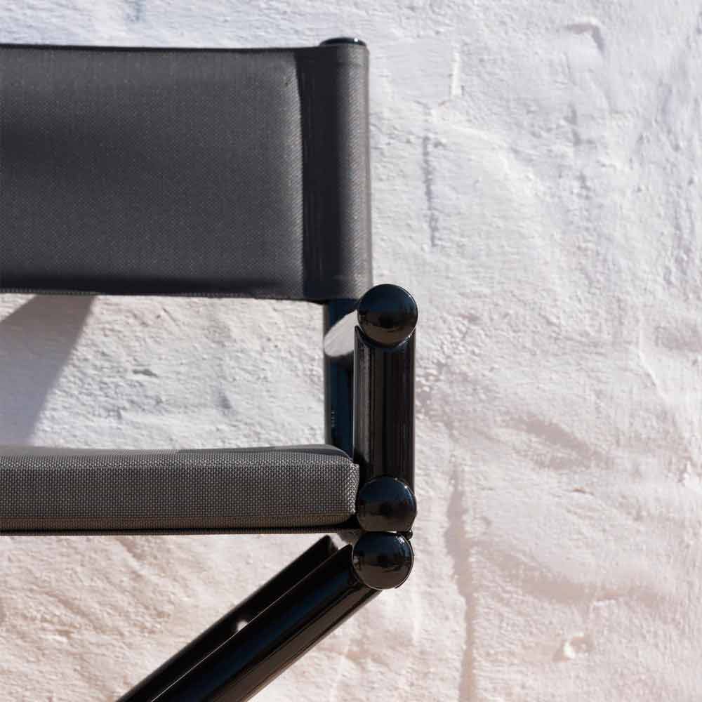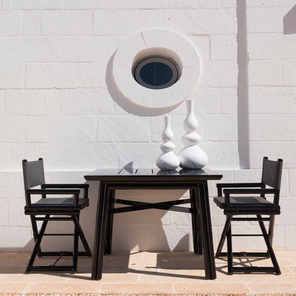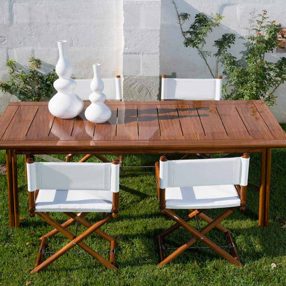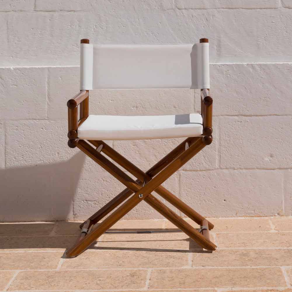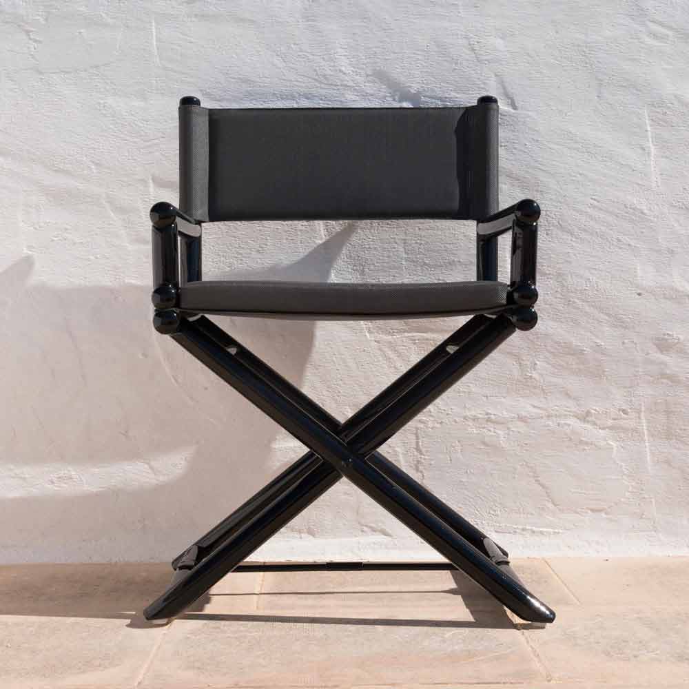 Sammenfoldelig direktørstol til udendørs brug i naturligt eller sort træ, luksus fremstillet i Italien.