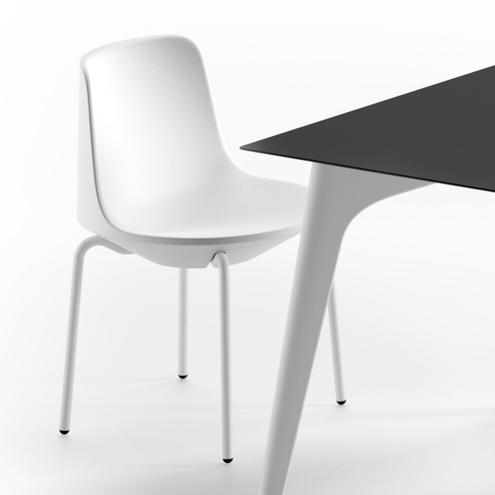 imødekommende og behageligt sæde. Kombinationen af aluminium og polyethylen giver elegance og samtidig modernitet, hvilket gør det til et