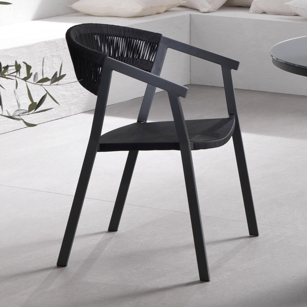 Havestol med epoxy pulverlakeret aluminiumsstruktur og rebvævning - 2 stk.