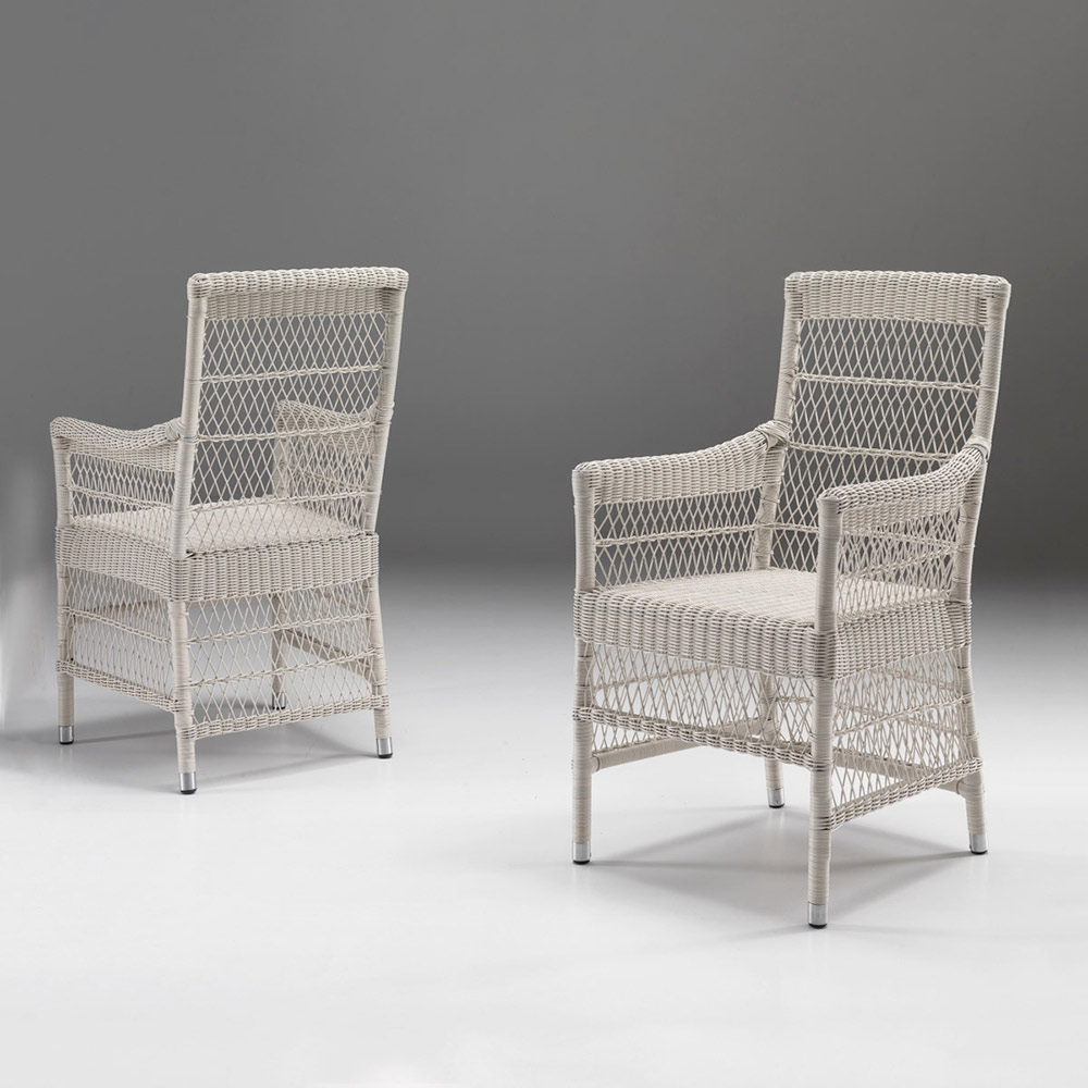 Den vævede stil er raffineret og delikat, og sammen med den meget høje kvalitet af materialerne og de afgørende former gør det denne stol perfekt til interiør- og eksteriørmøbler, både til private og kontraktmiljøer som terrasser, verandaer, haver, men de finder også en perfekt placering ved poolen.