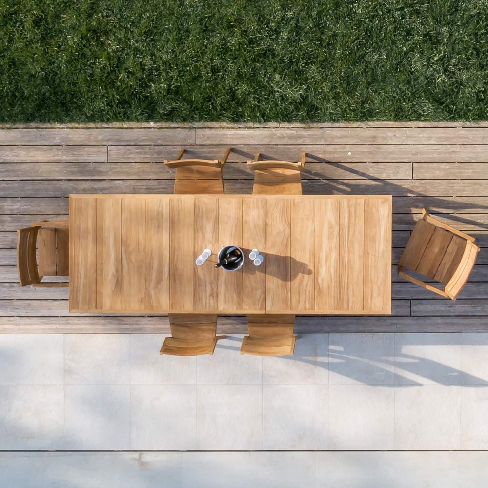 enkelt element, men med harmoniske proportioner, der er velegnet til at blive indsat i ethvert udendørs miljø som terrasser, verandaer, haver eller poolkanten for at give en charmerende atmosfære. Teaktræet, der er brugt til konstruktionen, garanterer