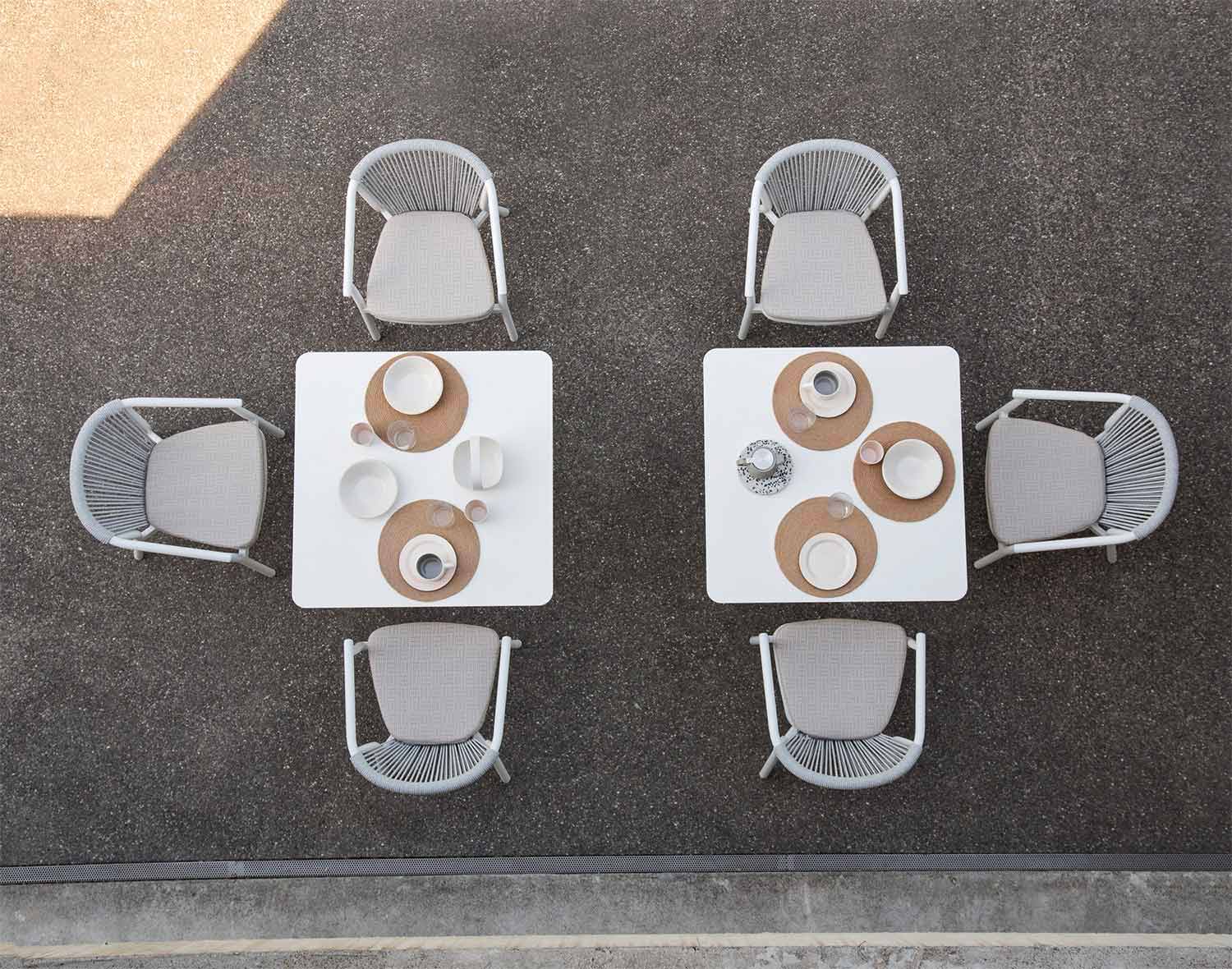 Vedligeholdelse: Samlingen tåler sollys og regn. Vi anbefaler regelmæssig vedligeholdelse og særlig opmærksomhed mod beskyttelsen af artiklene i tilfælde af ugunstige vejrforhold (is, hagl, pludselige ændringer i temperatur, fugtighed, vedvarende, torrid varme eller ekstrem kulde). Holdbarheden og integriteten af disse emner afhænger af den pleje, som de opretholdes med. Selv for aluminium og stålprodukter, selvom de er beskyttet af behandlinger og finish, der er egnet til udendørs brug, er det vigtigt at forhindre, at vand stagnerer i selve produktet. Faktisk har alle artikler tekniske huller, der er nødvendige til påføring af beskyttelsesbehandlinger og finish. Indføring af vand i disse huller og dets stagnation kan forårsage rust i rørets indre dele.