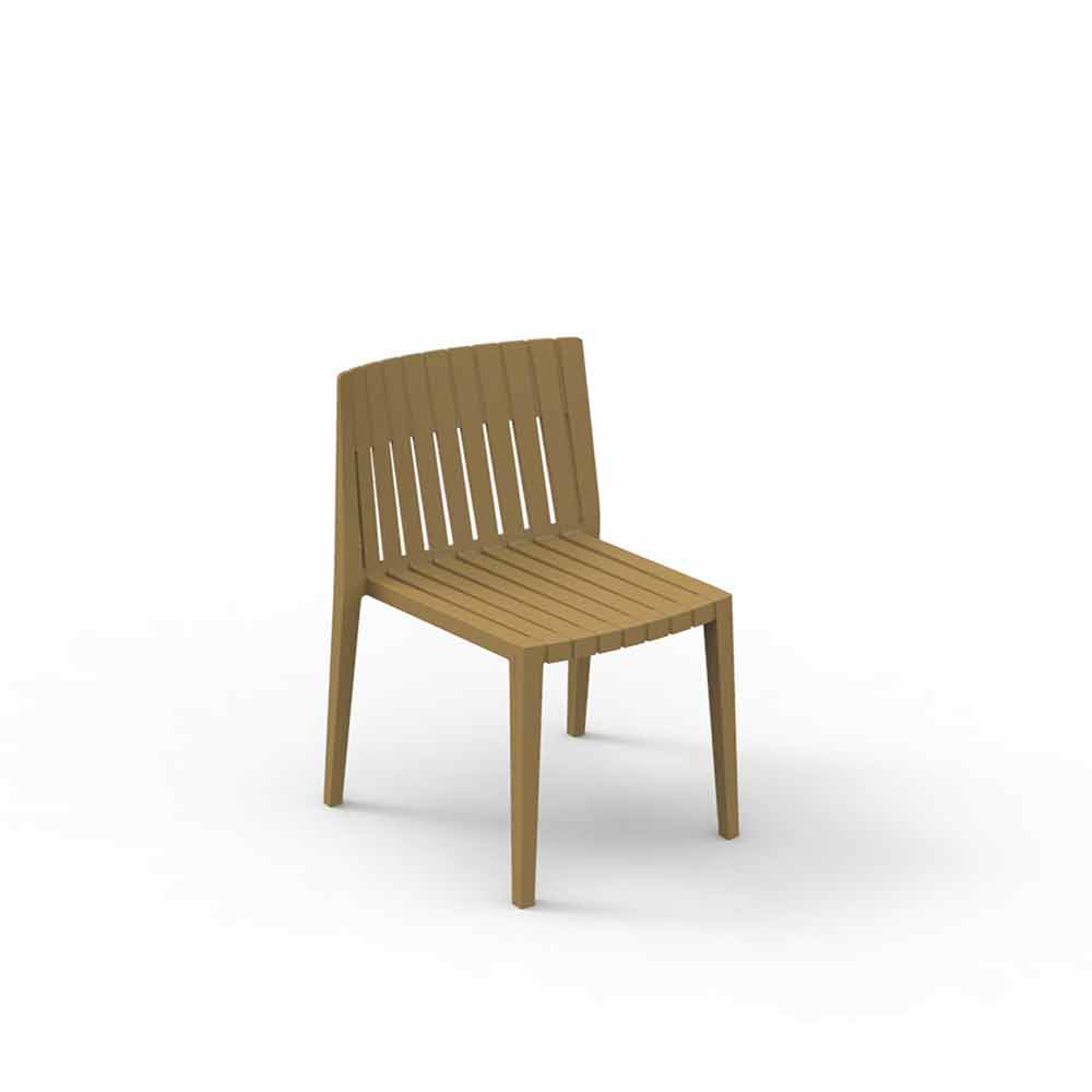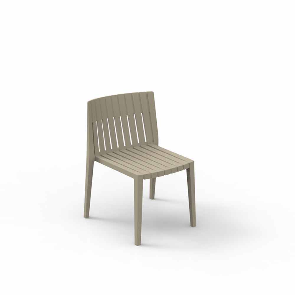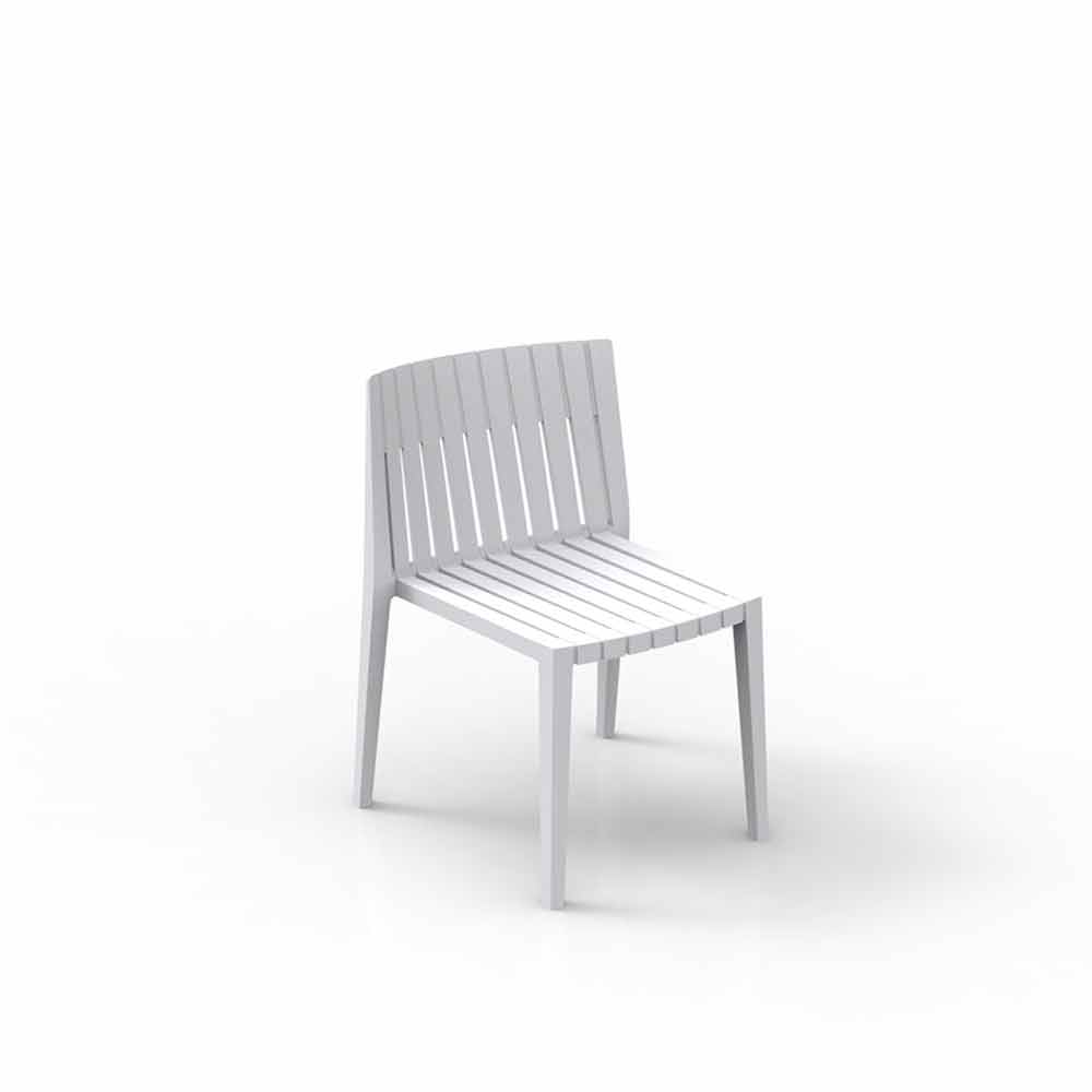Den udendørs stol uden arme, med definerede linjer, er lavet med polypropylen og glasfiber. Disse materialer er slagfaste og UV-stabilisatorer.