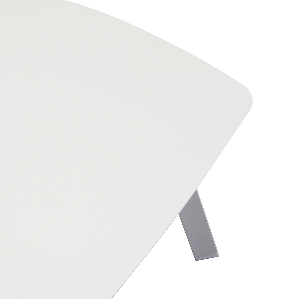 - duegråt aluminium, cremefarvede hynder og HPL-armlænsindsatser