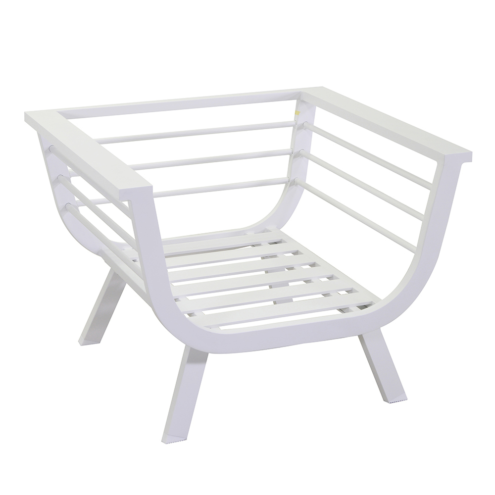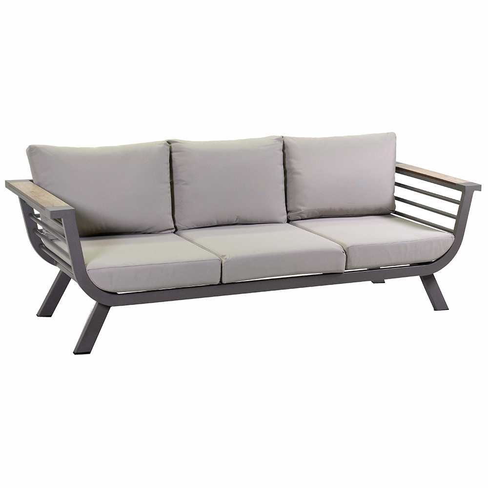 1 sofa: pulverlakeret aluminiumsstel, sæde- og ryghynde i 100% vandafvisende polyesterstof 240g/m tyk 12cm