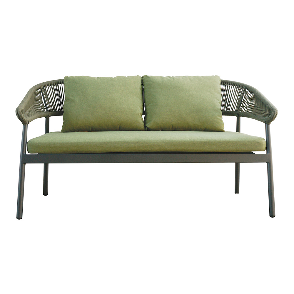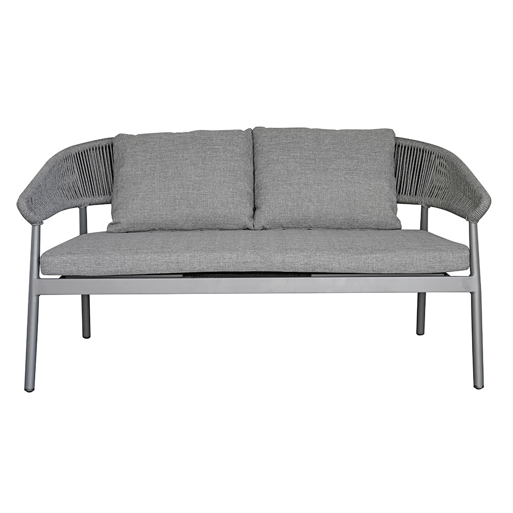 1 sofa: aluminiumsramme, ryglæn af reb, aftagelige stofhynder