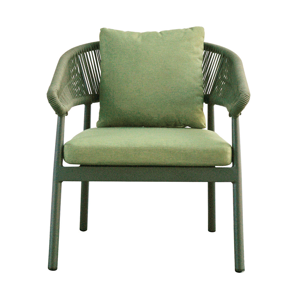 . 2 lænestole: aluminiumsstel, ryglæn af reb, hynde i aftageligt stof