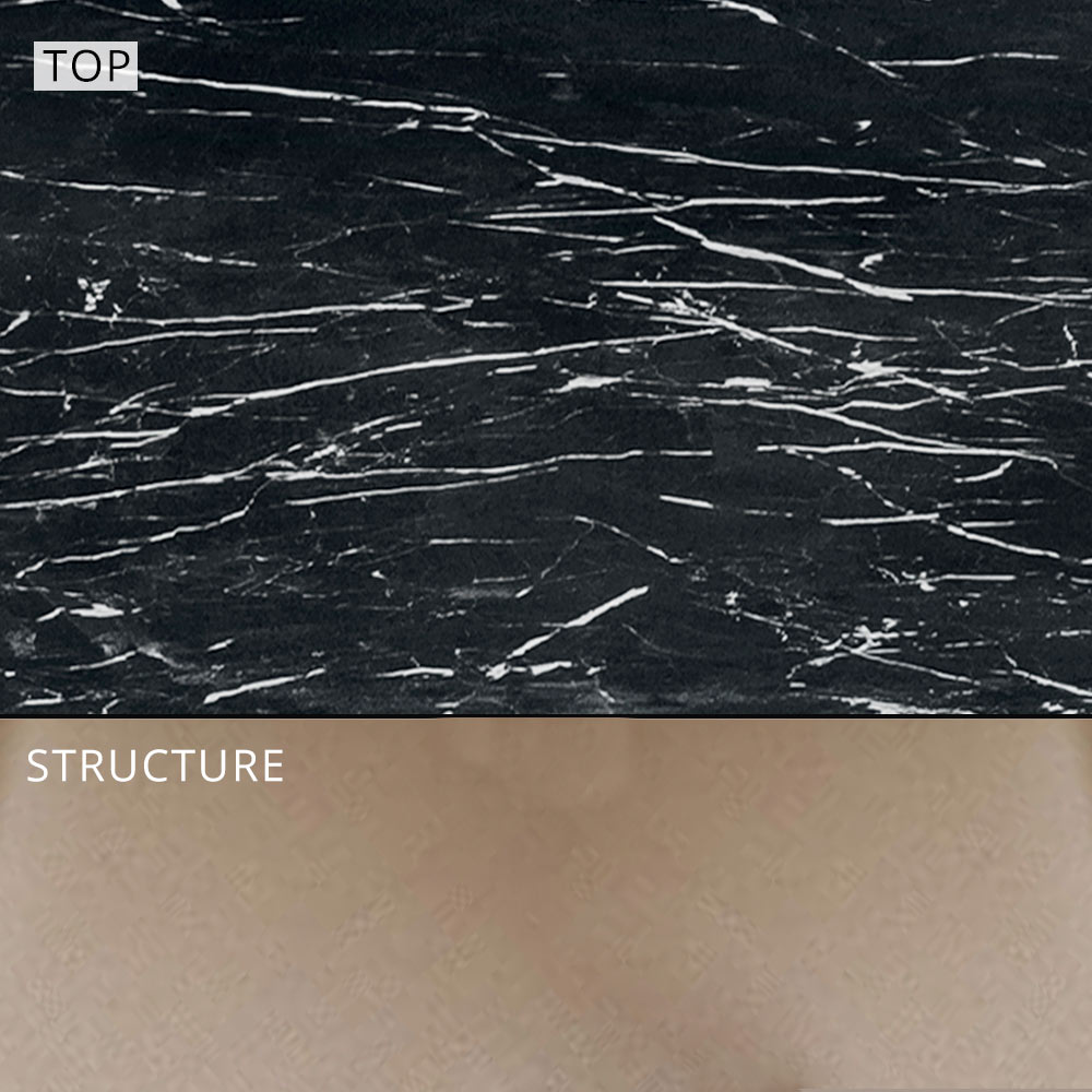 - metal sandgrå aluminium og sort marmor effekt stentøj top