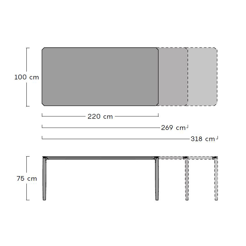 Spisebord kan udvides til 318 cm udendørs design i aluminium og stentøjsplade i forskellige finish, fremstillet i Italien.