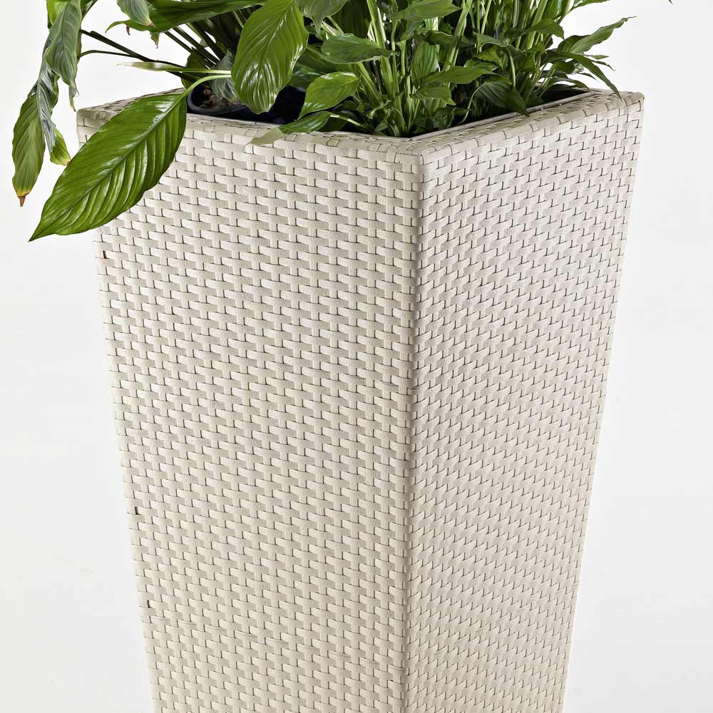 Produkterne i denne kollektion er håndvævede og kan have uregelmæssigheder, ufuldkommenheder og farveforskelle (forhold, der kan forekomme selv nogen tid efter købet). For at sikre, at produktet holder længere, anbefaler vi, at man undgår længerevarende udsættelse for sollys, regn, fugt og høje temperatursvingninger (faktorer, der kan svække fiberen, gøre den udsat for brud og fremme forekomsten af skimmel). Hvis produktet udsættes for særlig høj luftfugtighed, anbefaler vi at lade det tørre hurtigt og fuldstændigt og altid undgå direkte sollys. Dimensioner : L 50 x D 50 x H 90.
