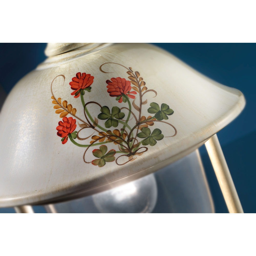 Denne udendørs væglampe er udelukkende lavet af aluminium dekoreret med håndmalede blomster for en klassisk og harmonisk stil mellem form og farver.