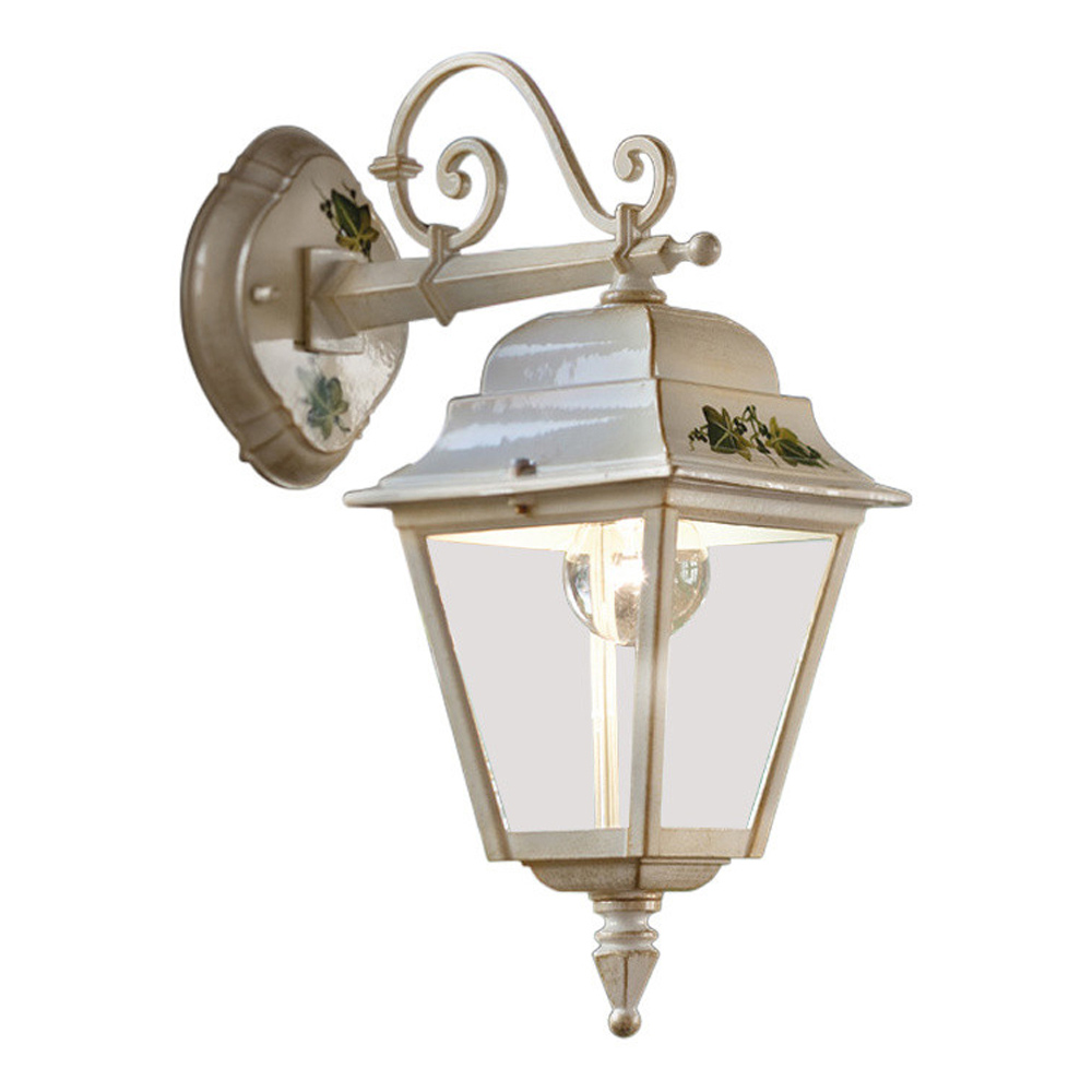 Denne udendørs væglampe er udelukkende lavet af hvid aluminium dekoreret med håndmalet efeu for en klassisk og harmonisk stil mellem form og farver.