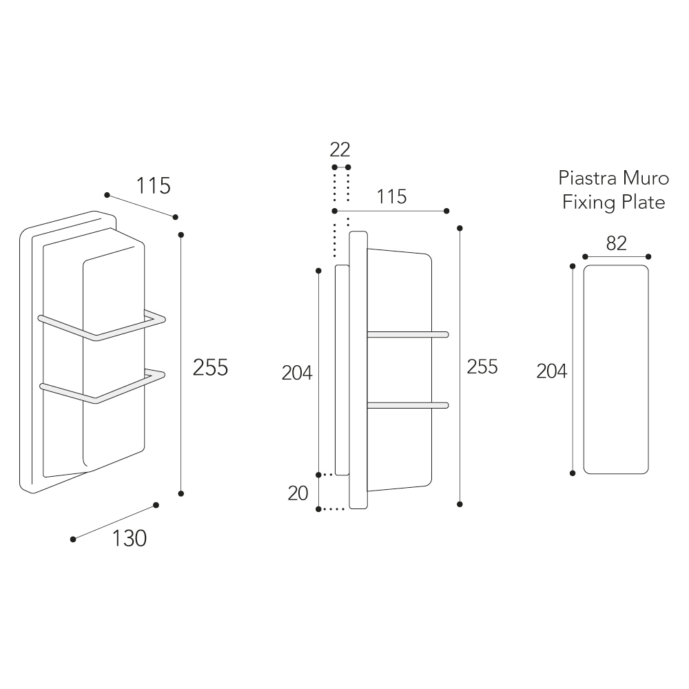 • Vægplade: 20,4 × 8,2 cm