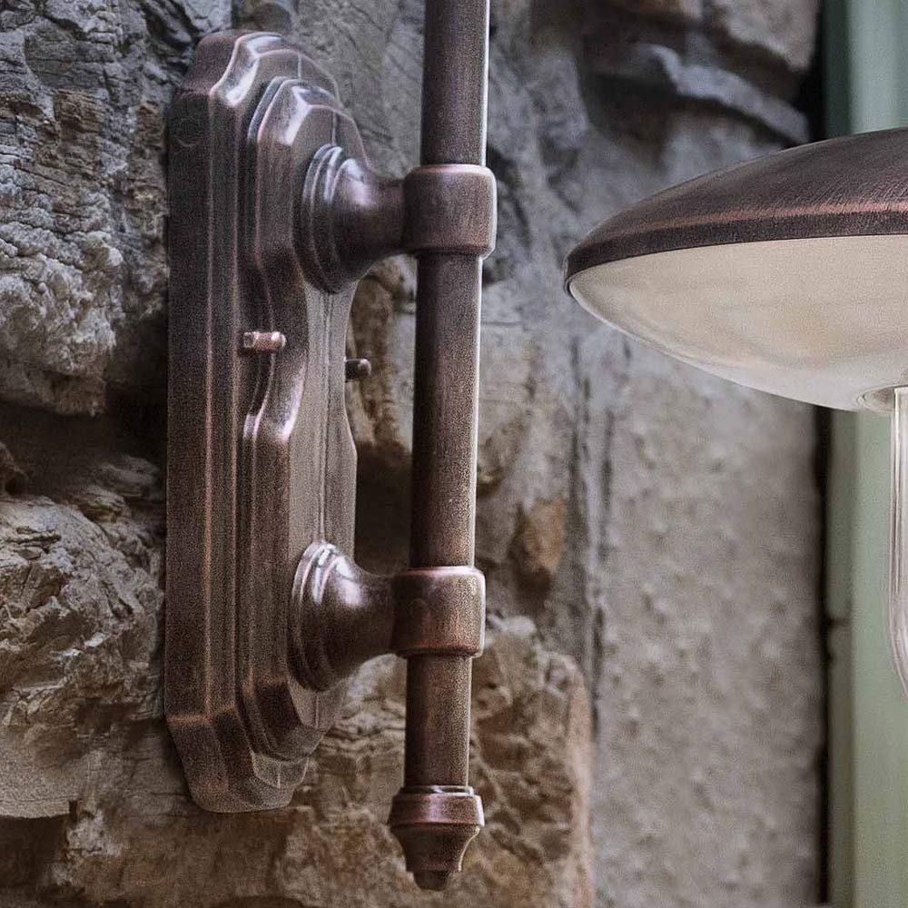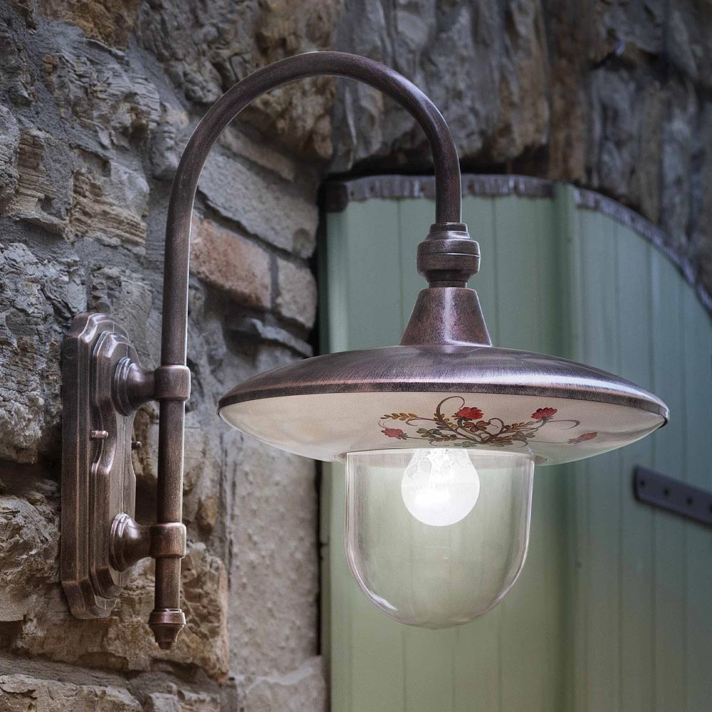 Denne udendørs væglampe er udelukkende lavet af sort aluminium med kobberafskærmning og dekoreret med håndmalede blomster for en klassisk og harmonisk stil mellem form og farver.