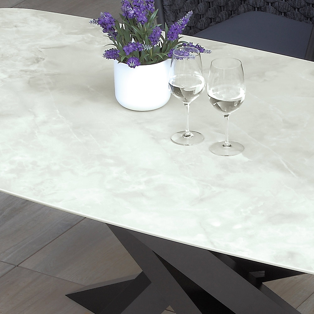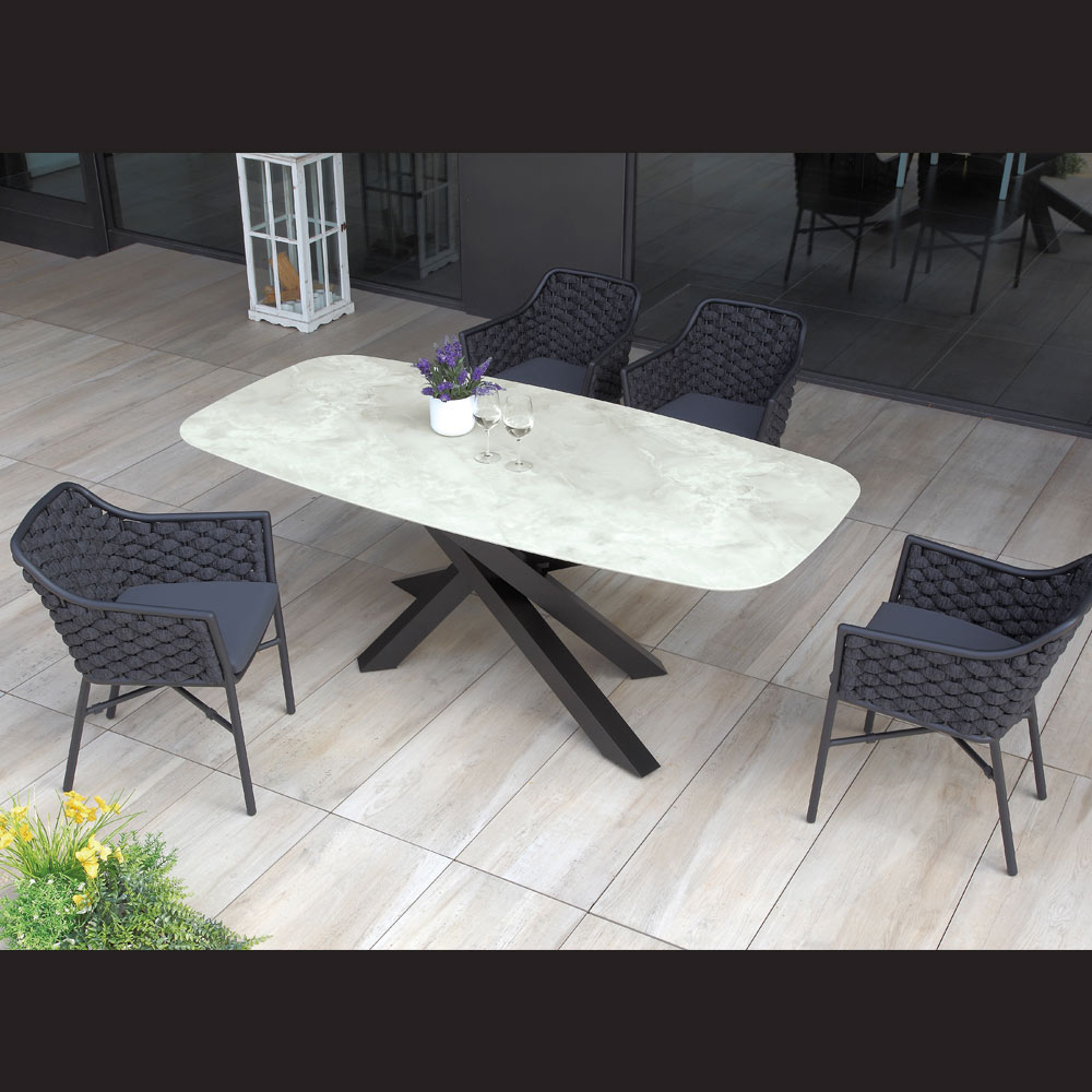 Dette havebord kombinerer elegant design og overlegen modstand , perfekt til at indrette ethvert udendørs miljø med stil. Dens malede aluminiumsstruktur , solid og med et moderne snit, er kombineret med en raffineret top i lagdelt HPL , kendt for sin ekstreme holdbarhed og modstandsdygtighed over for atmosfæriske stoffer , ridser og varme.