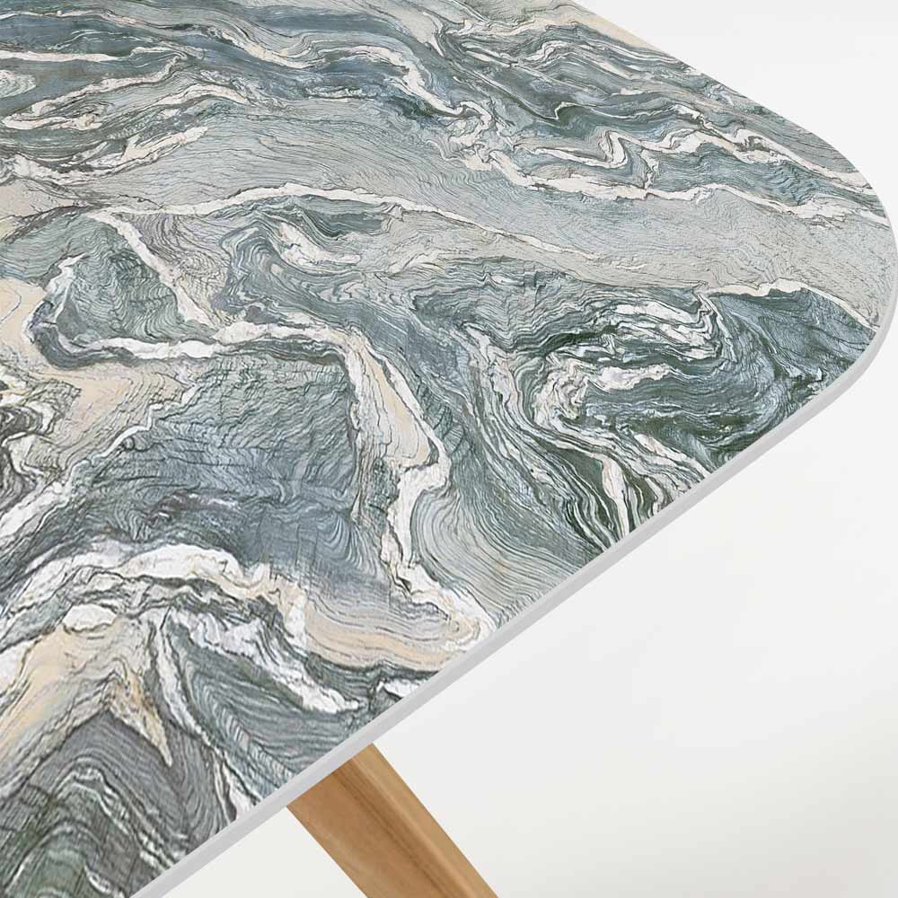 fremstillet i Italien. Dette eksklusive udendørsbord er en perfekt blanding af naturlig elegance og moderne design. Med en keramisk bordplade med raffineret åretegning er dette bord mere end blot et møbel, men et sandt fokuspunkt i ethvert udendørsområde. Hvert bord er unikt takket være de naturlige variationer i keramikken, der indfanger jordens essens med farver, der spænder fra grå til blå og grøn.