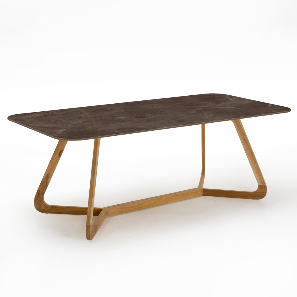 Rektangulært havebord i træ og keramik, fremstillet i Italien