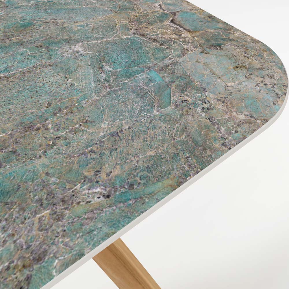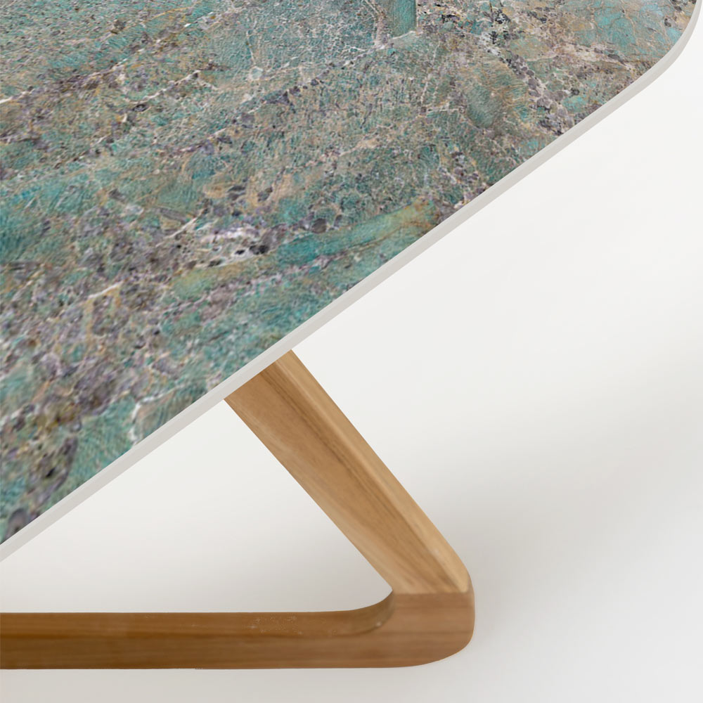 fremstillet i Italien. Dette eksklusive udendørsbord er en sand designperle, der kombinerer træets elegance med keramikkens modernitet. Bordpladen, der er fremstillet af keramik af høj kvalitet med en fantastisk antikgrøn nuance, tilbyder enestående vejrbestandighed og varig skønhed.