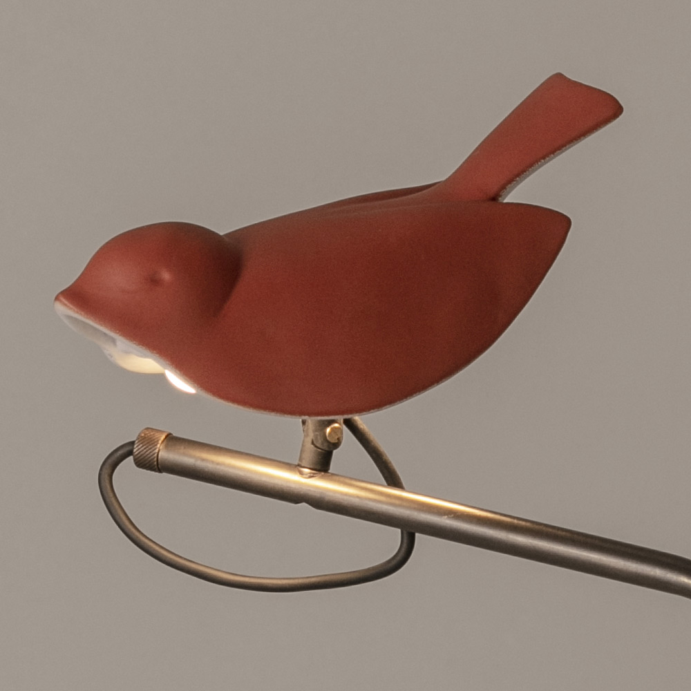 naturligt poleret metal. Lampen kan indstilles i 3 forskellige positioner. Tilføj et strejf af natur og elegance til dit rum med denne charmerende fugleformede lampe . Det minimalistiske og moderne design, kombineret med en fugls charmerende silhuet, gør dette smykke til et rigtigt blikfang i ethvert miljø.