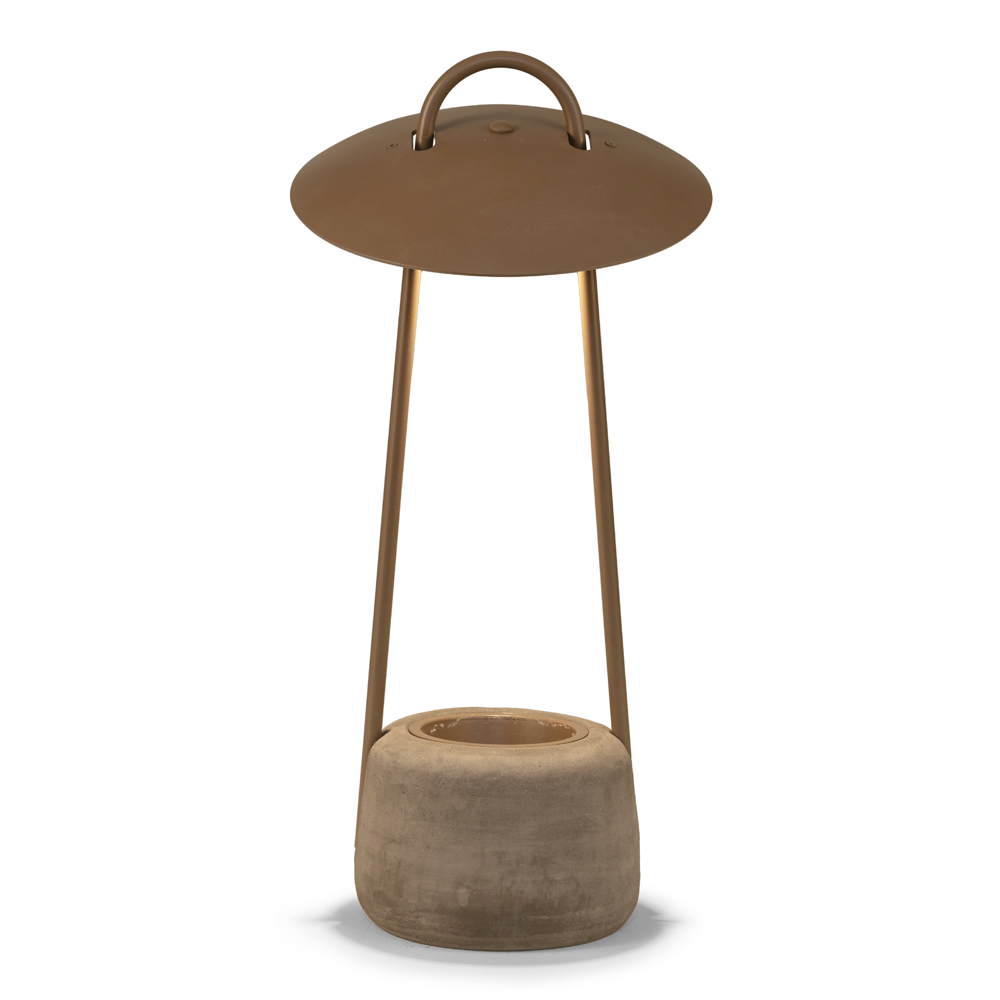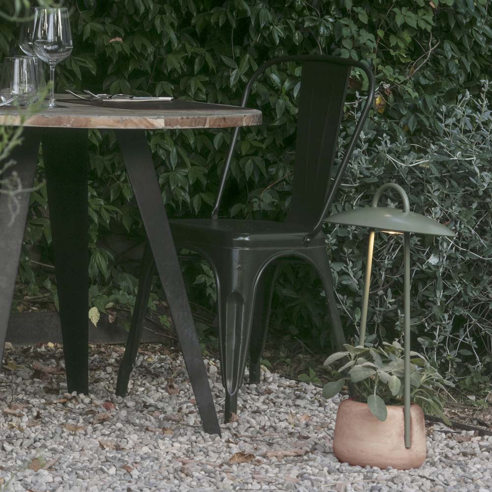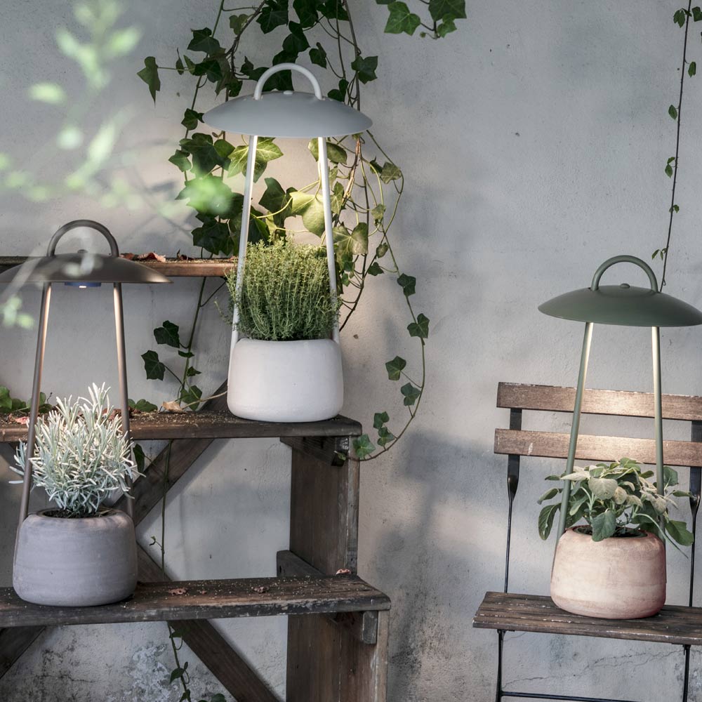 Det enkle, men raffinerede design, med en lerbund, der fungerer som en vase, matcher perfekt den elegante metalstruktur, der understøtter en minimalistisk lampeskærm. Denne kombination oplyser ikke kun dit miljø, men skaber også et grønt hjørne, ideelt til små planter eller aromatiske urter.