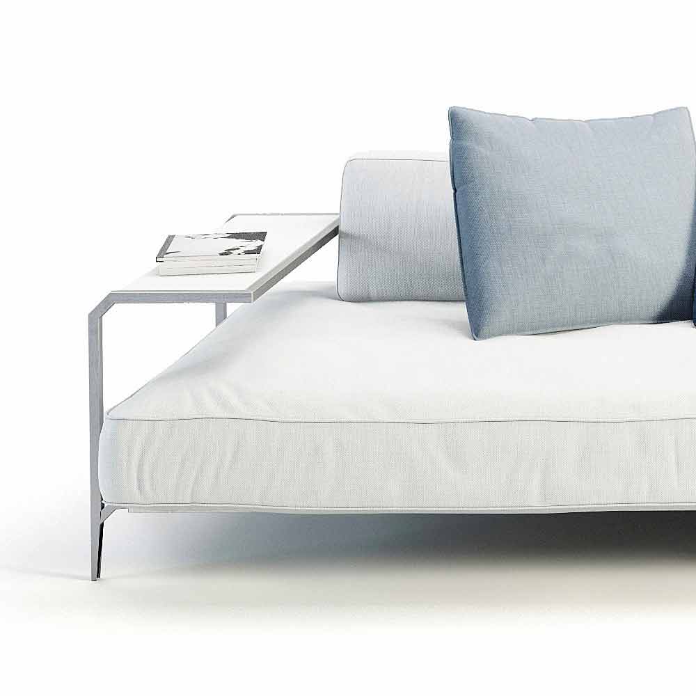 Udendørssofa med sofabord, i stål og hvidt stof, moderne design fremstillet i Italien.