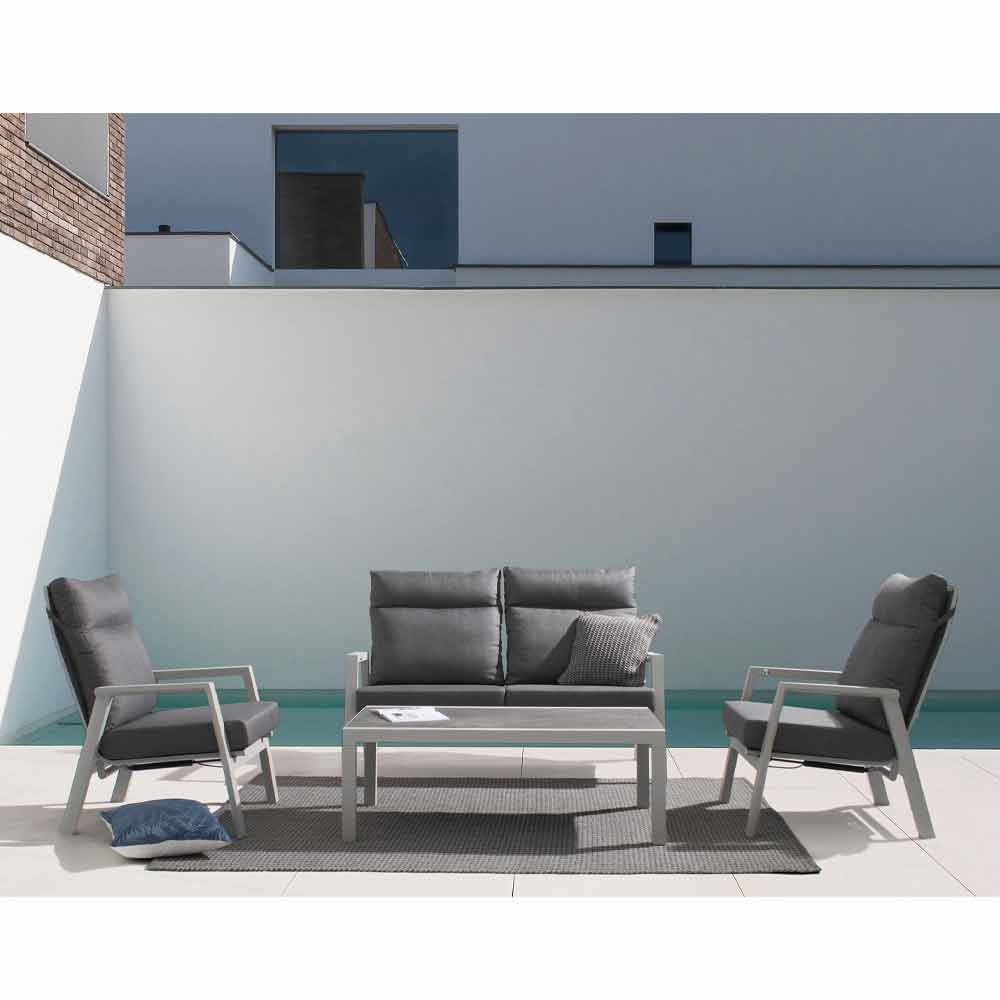 Udendørssofa i stof og aluminium med tilbagelænet ryglæn - Nathy
