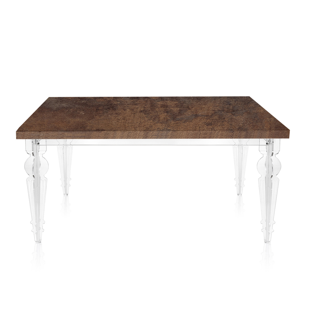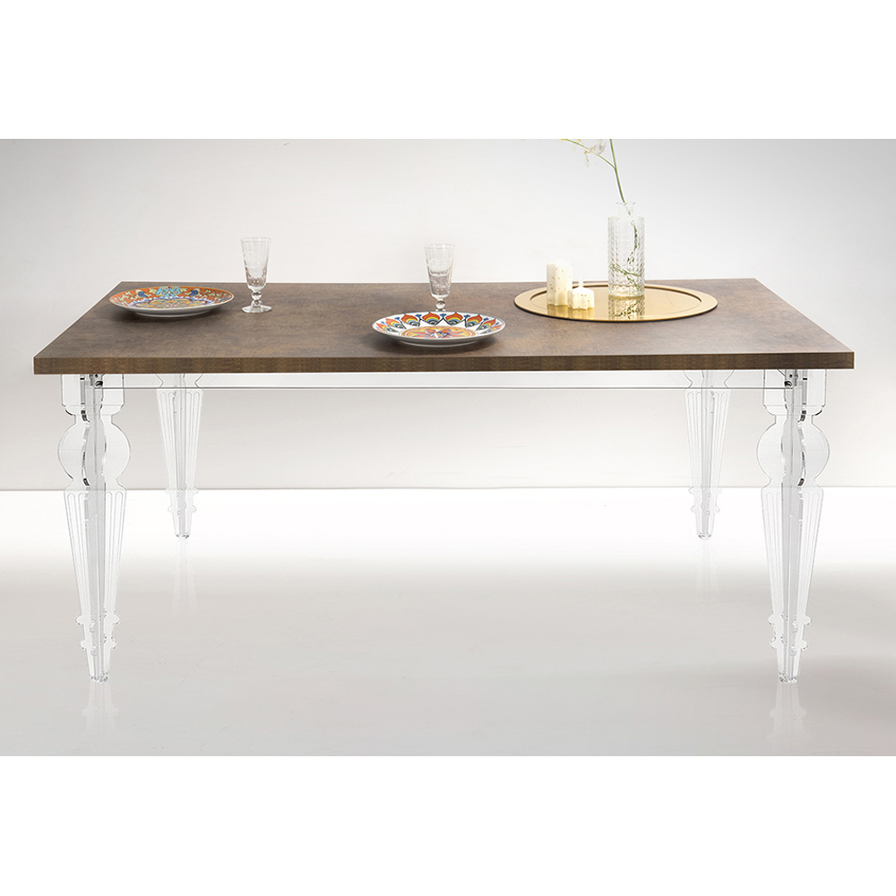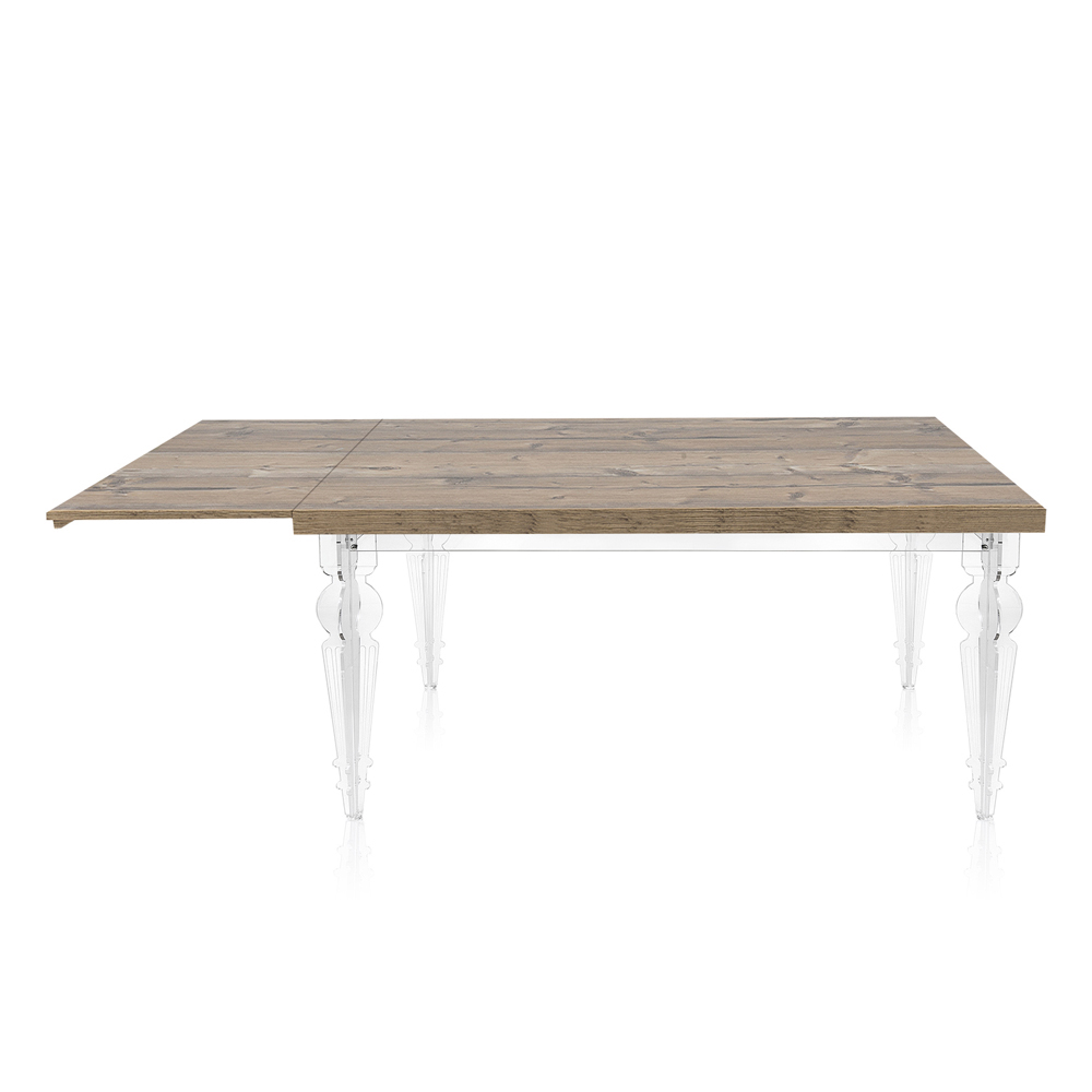 Udtrækbart spisebord op til 255 cm i plexiglas og træ Made in Italy.
