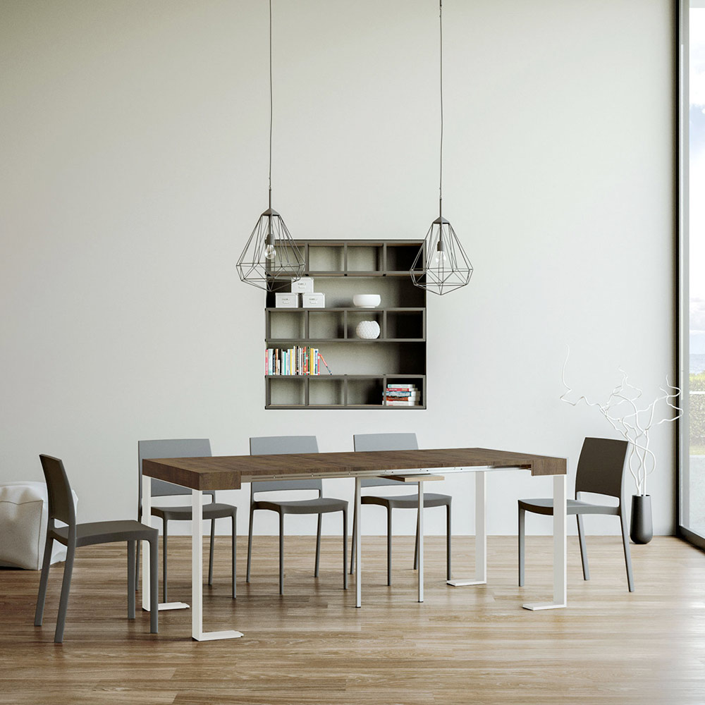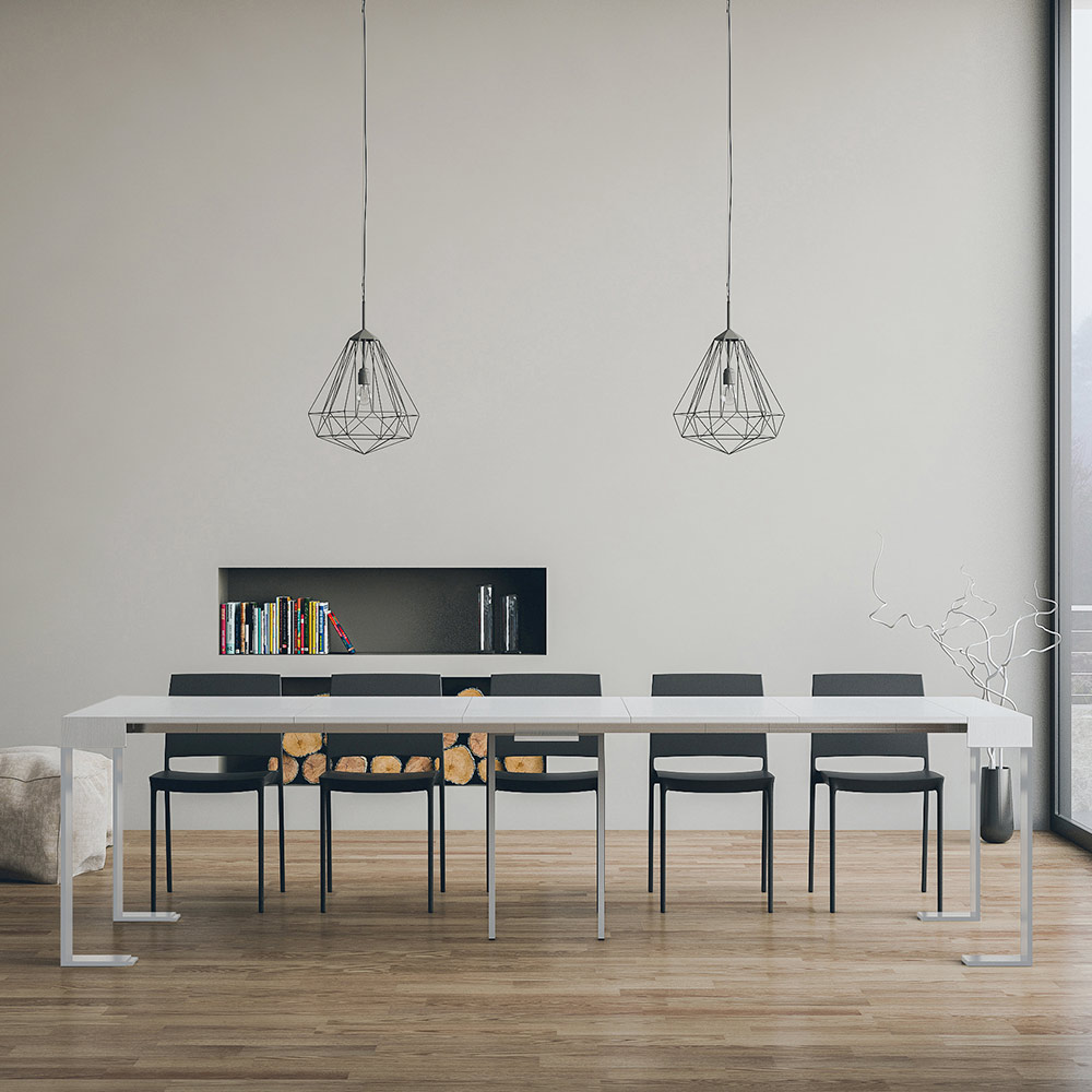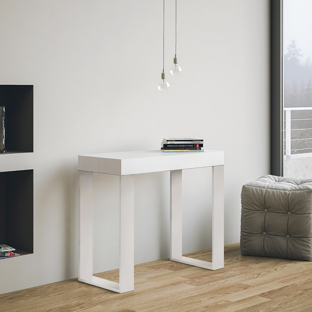 Dette udtrækkelige konsolbord er et eksempel på moderne design, der er designet til at kombinere elegance og praktisk.;