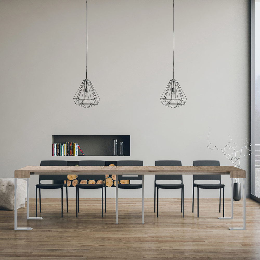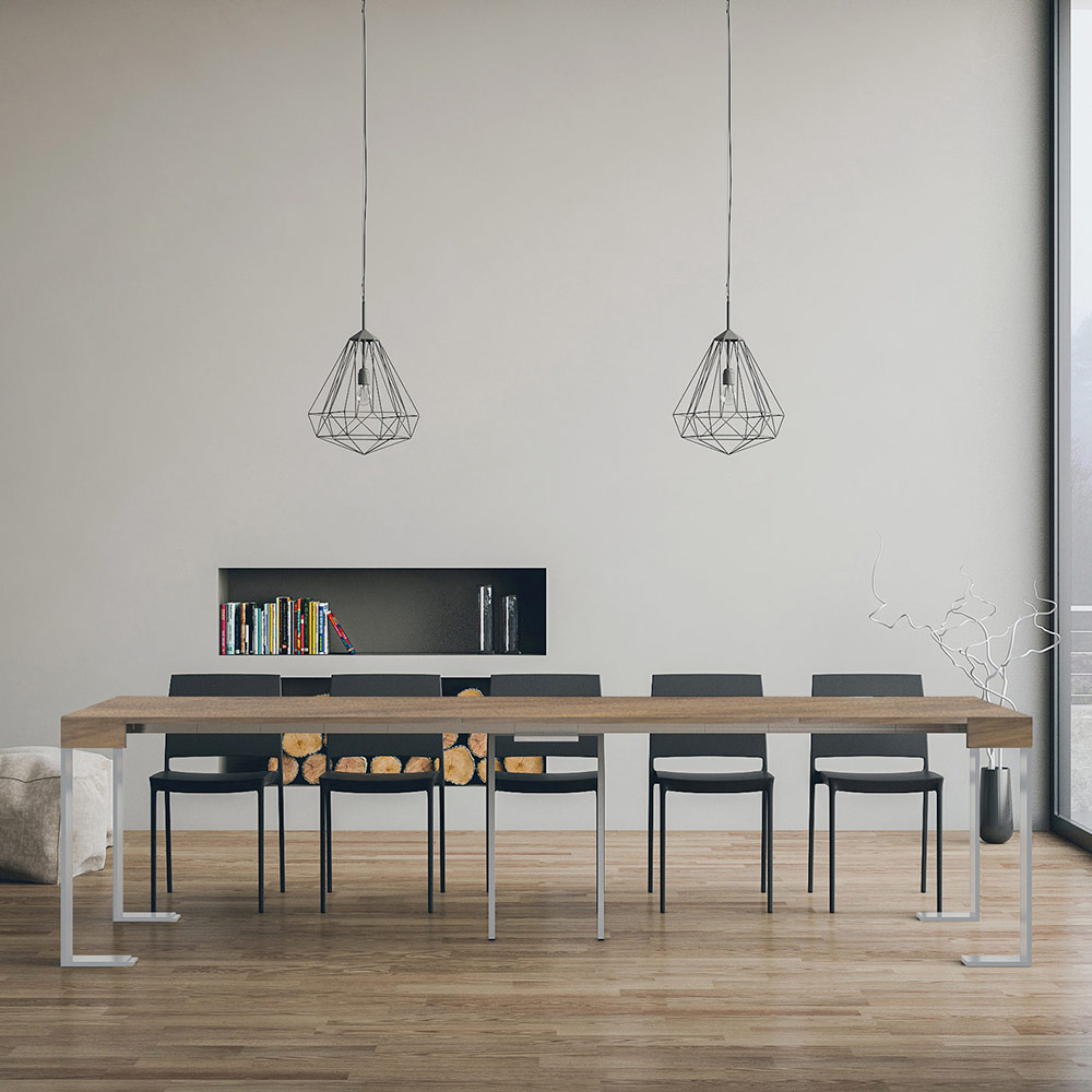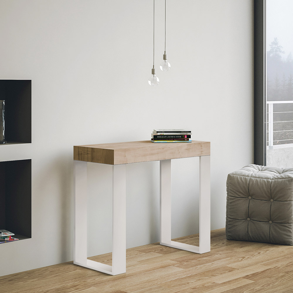 Det vigtigste ved dette konsolbord er dets evne til at udskyde, så du kan forvandle det fra et slankt, diskret møbel til et mere rummeligt og hyggeligt bord. Det gør det ideelt til små eller multifunktionelle rum, hvor hver centimeter er dyrebar.