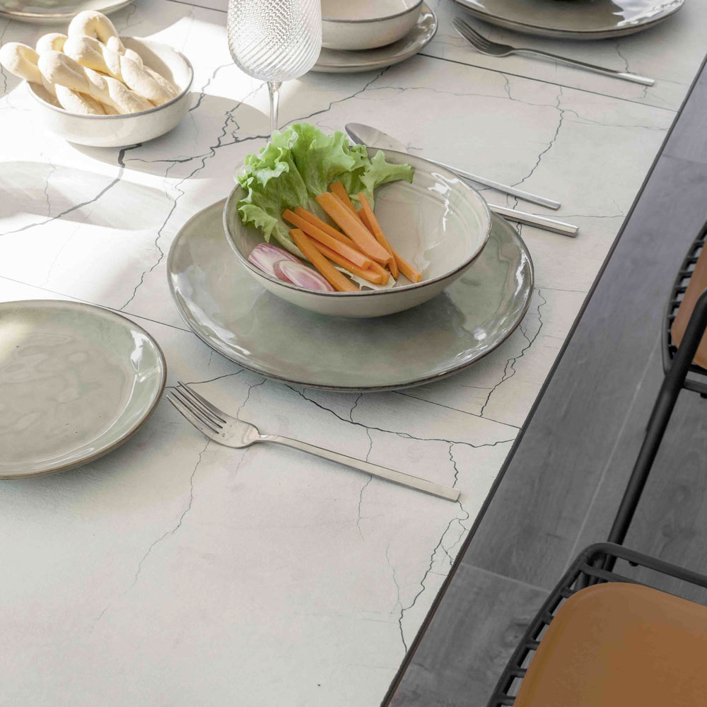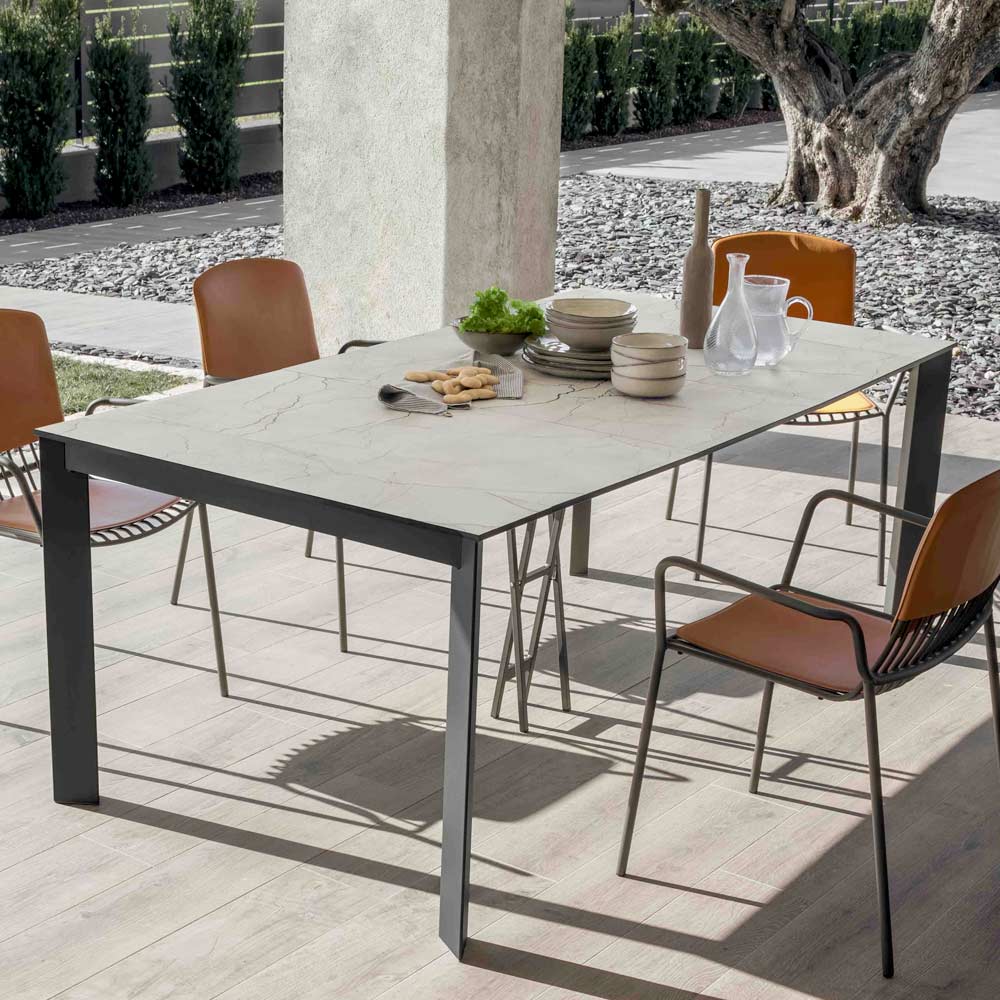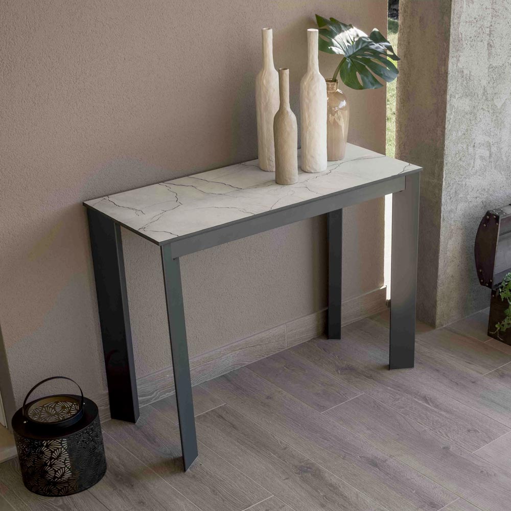 Denne udvidelige konsol er det perfekte valg for dem, der ønsker at kombinere funktionalitet og stil i deres have eller terrasse. Konsollen er lavet af materialer af høj kvalitet og har en hpl- top, som ikke kun giver et elegant udseende, men også er modstandsdygtig over for atmosfæriske stoffer, hvilket sikrer holdbarhed over tid.