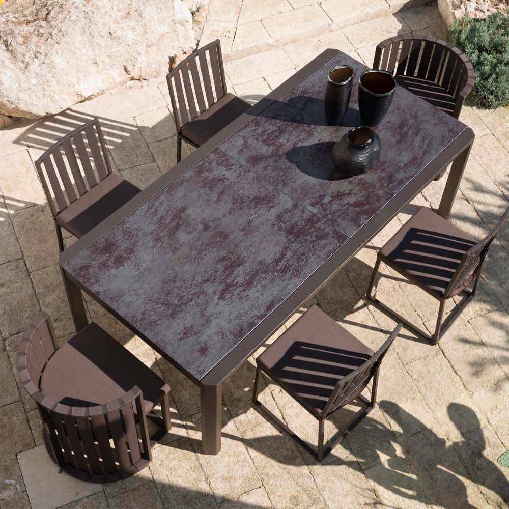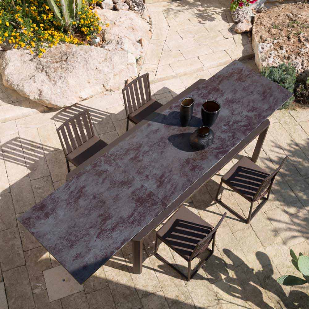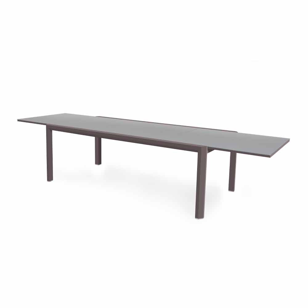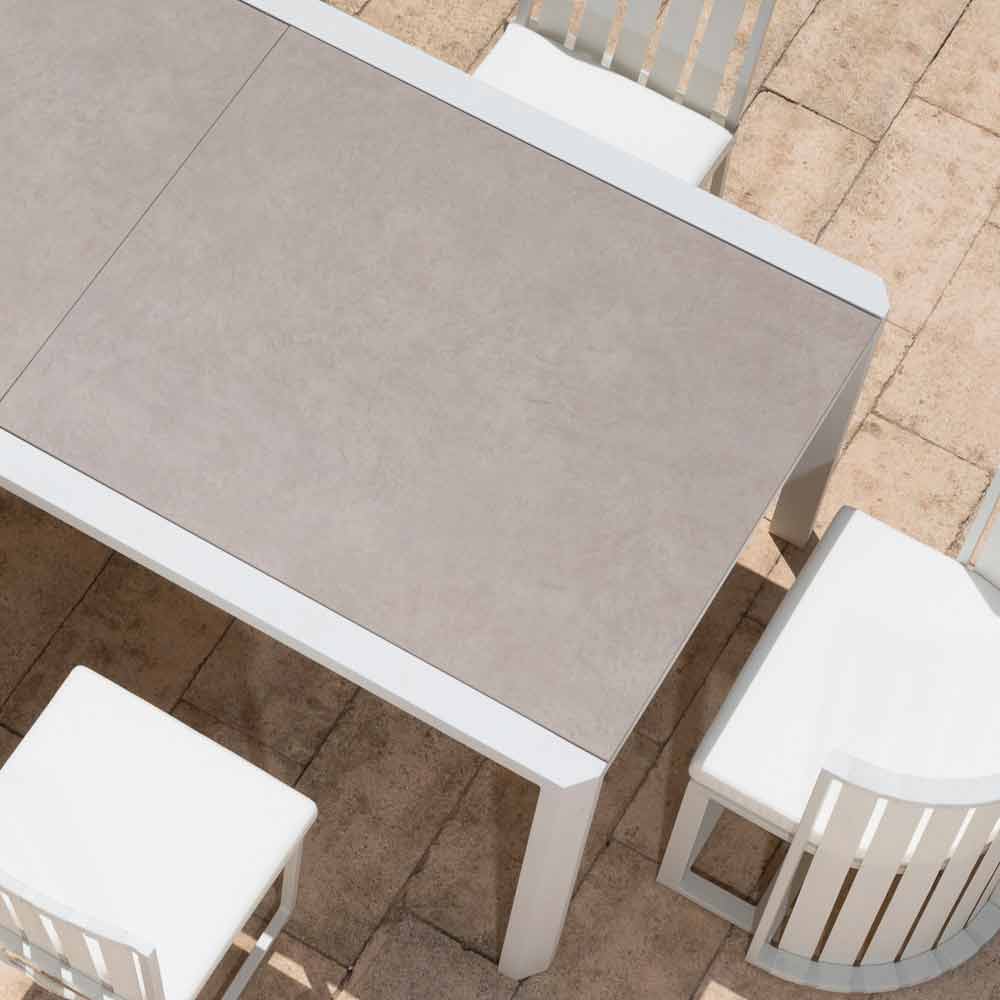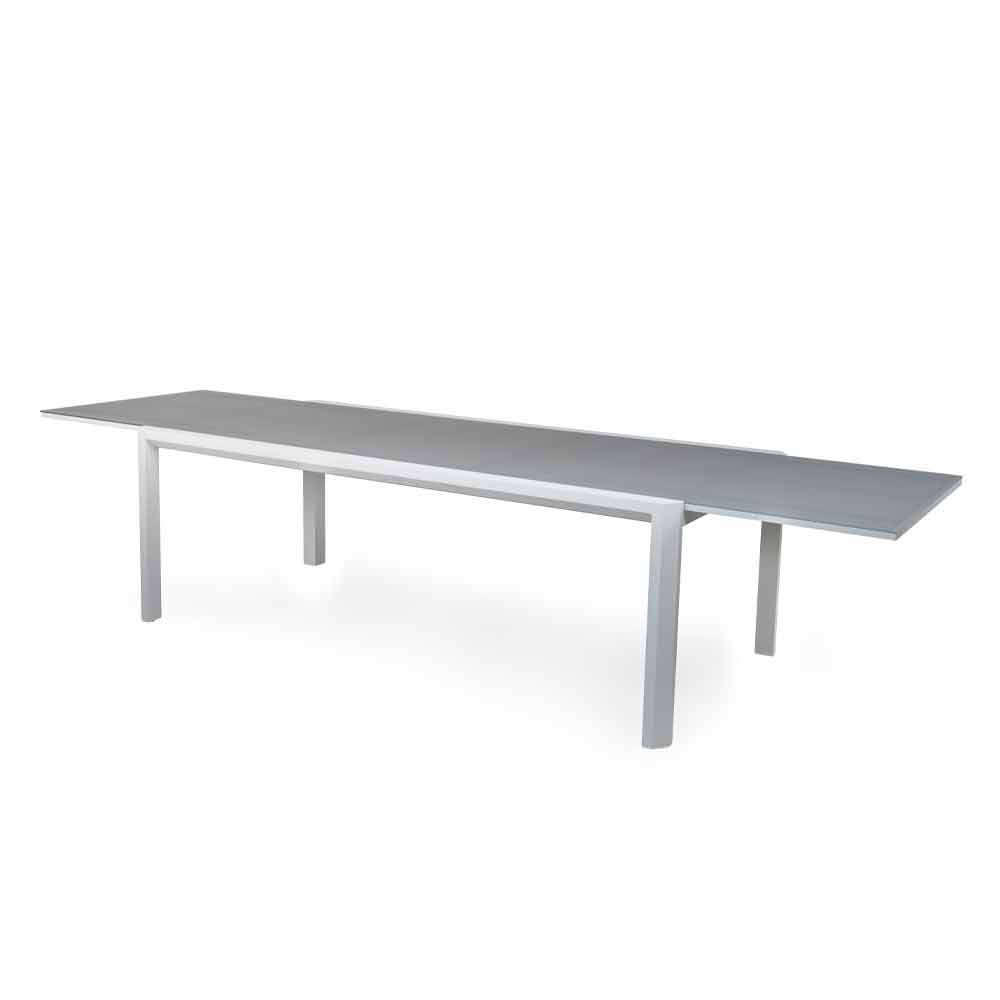 Udendørs spisebord, der kan udvides til 340 cm, aluminiumsstruktur i 3 overflader og top af glas eller laminam.