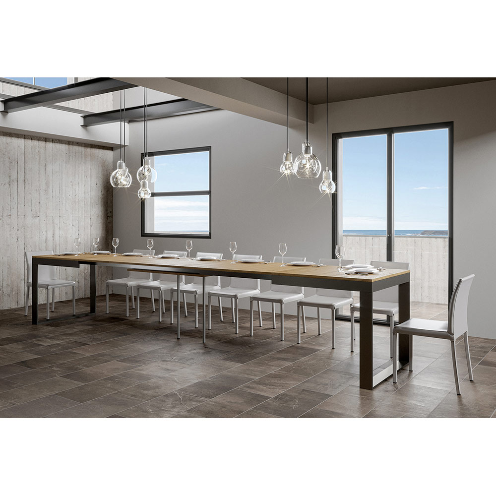 Dette bord udmærker sig ved sin mangsidighed takket være den smarte mekanisme, der gør det nemt at forlænge det og forvandle det fra et behageligt bord til et stort bord med plads til flere gæster. Det er ideelt til dem, der kan lide at underholde venner og familie, eller til dem, der har brug for tilpasningsevne i multifunktionelle miljøer.