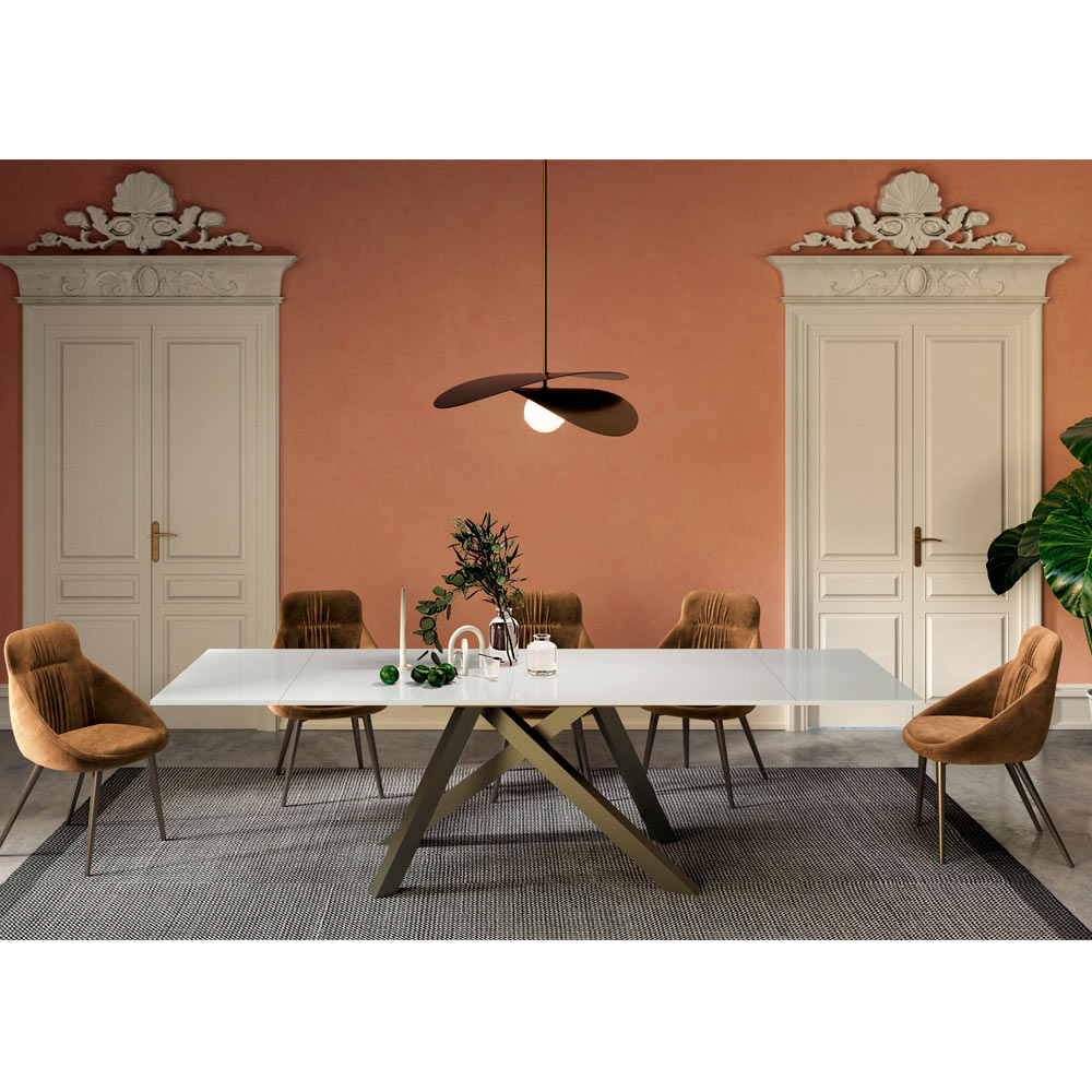 Udtrækbart stuebord med integrerede udtræk, mat hvid glasplade , udtrækbar lige kant,