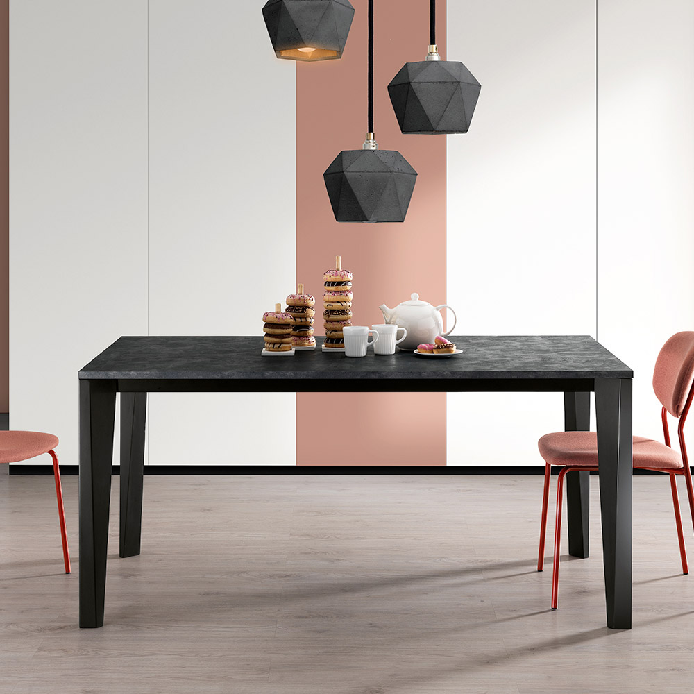 Designet er moderne og rent, med klare linjer, der formidler en følelse af orden og nøgternhed. De trapezformede ben giver upåklagelig stabilitet, der forener styrke med minimalistisk skønhed . Evnen til at transformere og tilpasse sig er i perfekt harmoni med behovene hos dem, der ønsker, at møbler skal afspejle et dynamisk og begivenhedsrigt liv.