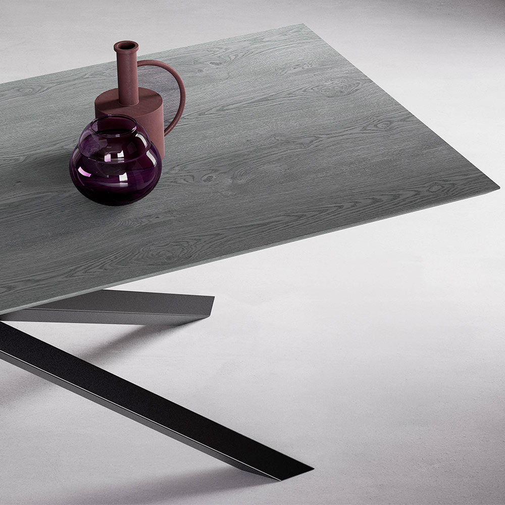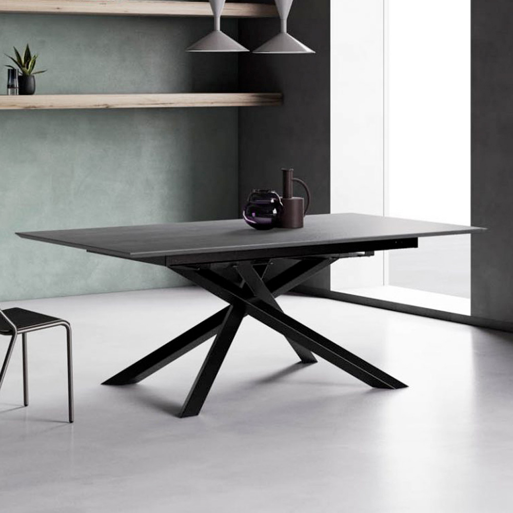 Udtrækkeligt bord med plade af grå egetræ og grafitben Made in Italy.