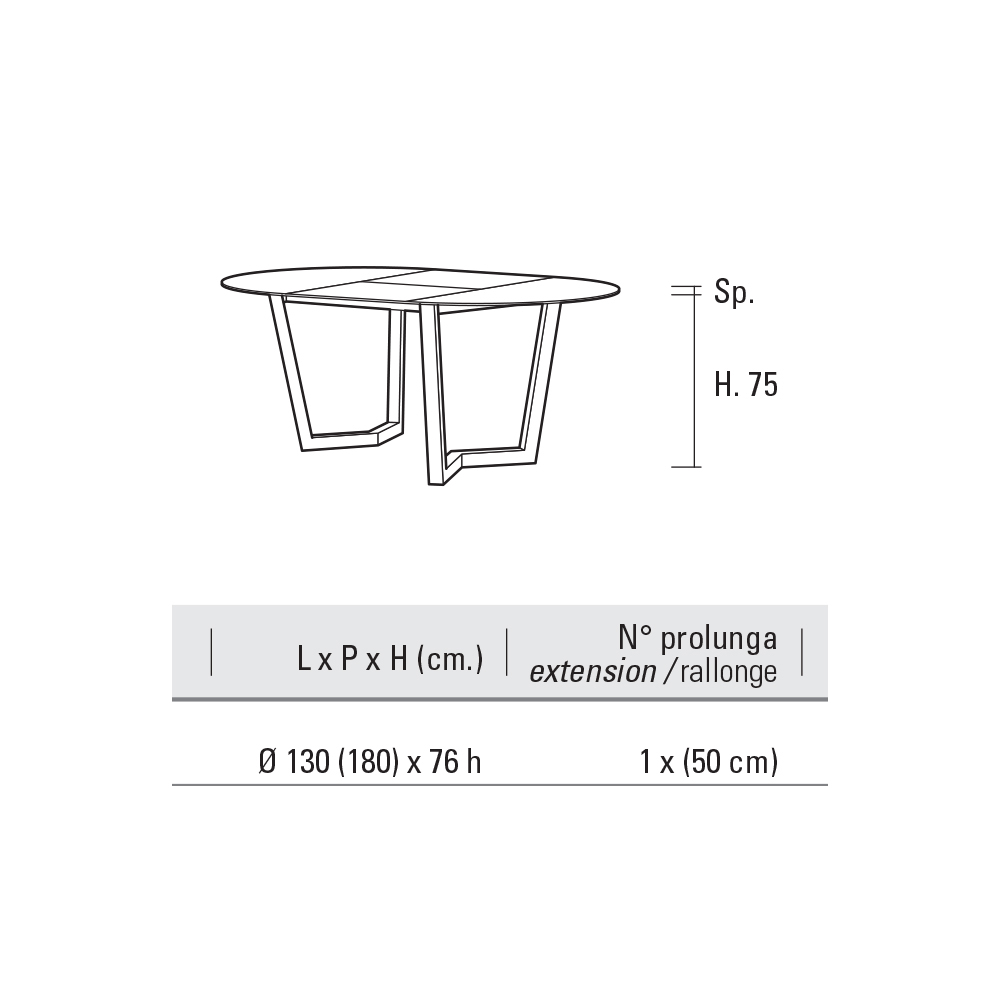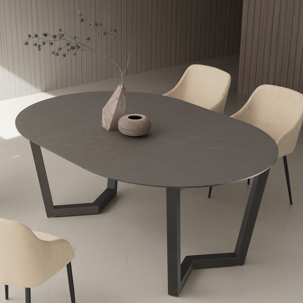Rundt spisebord med udtrækbar plade i lagdelt HPL Made in Italy.