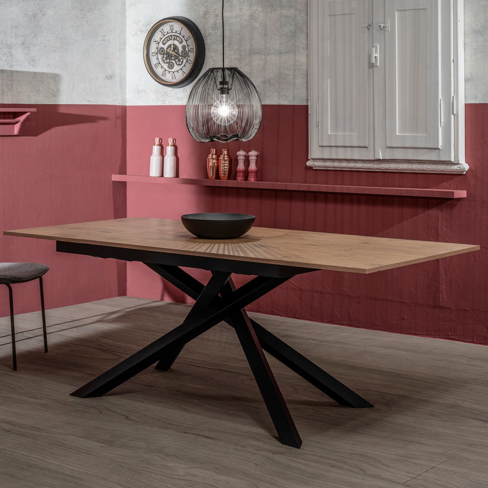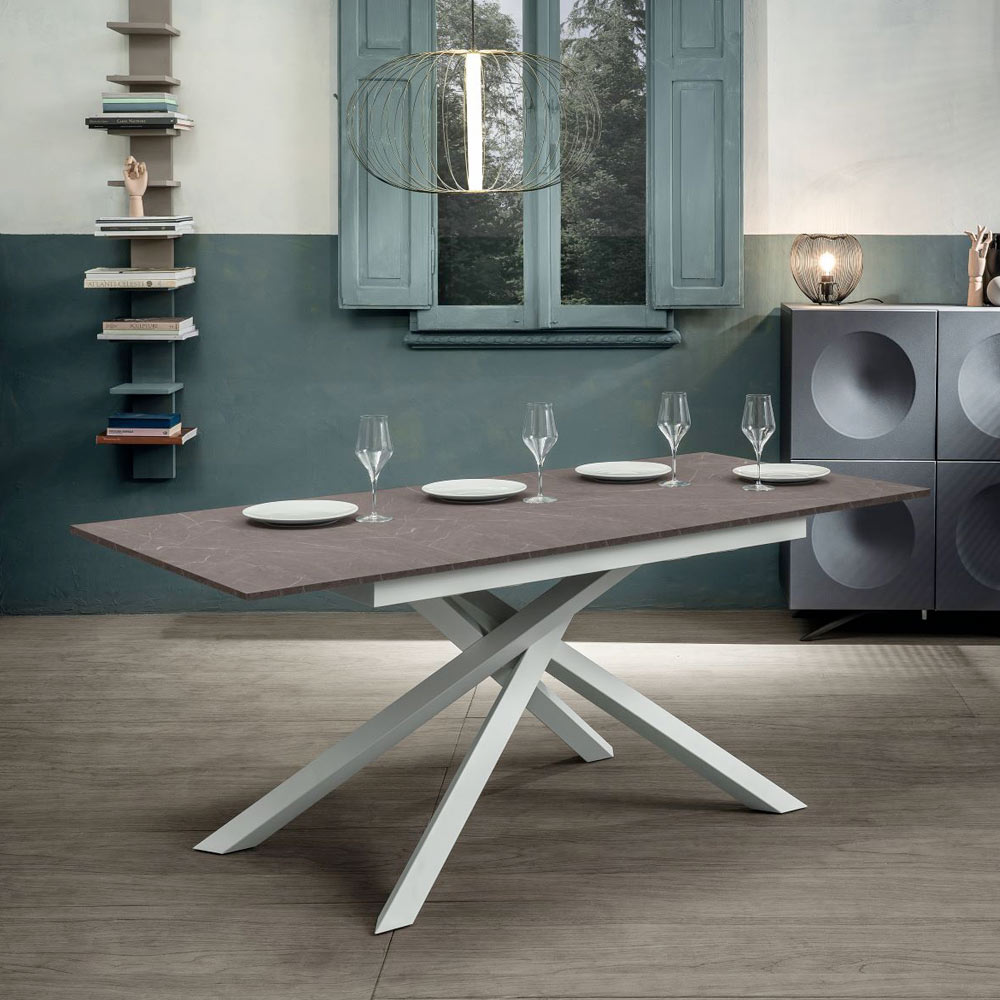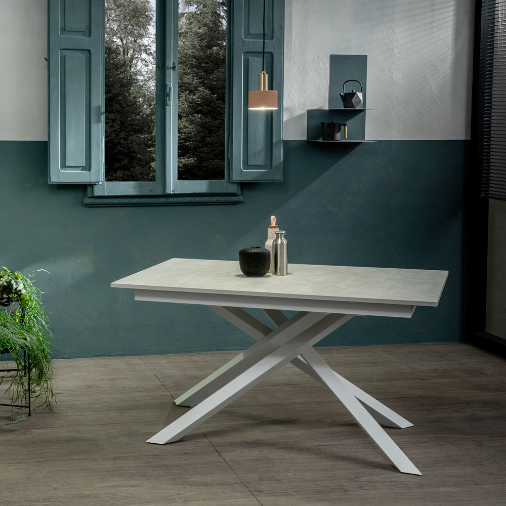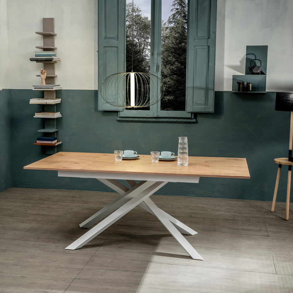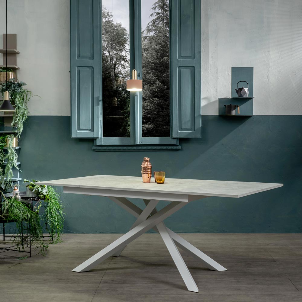 Designet af det udvidelige bord går ud over det funktionelle aspekt og er i stand til at give rum en unik karakter, takket være dens base med en sofistikeret form, der fanger øjet. Beliggende i opholdsstuen med en moderne stil, som favoriserer minimale linjer, kan den rumme op til 8 personer og skaber et mødested, hvor du kan tilbringe tid med familie eller venner. Dette spisebord bliver den ubestridte hovedperson i stuen, som afspejler husets stil og personlighed.