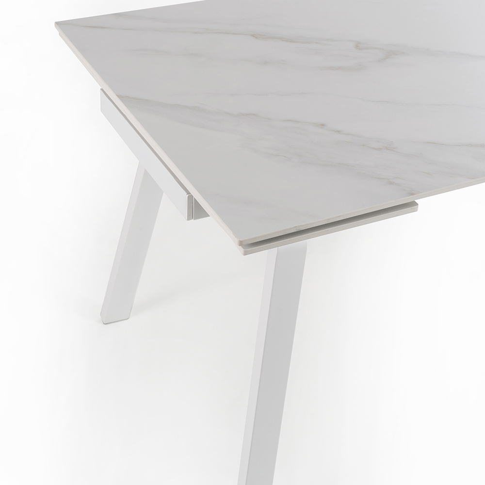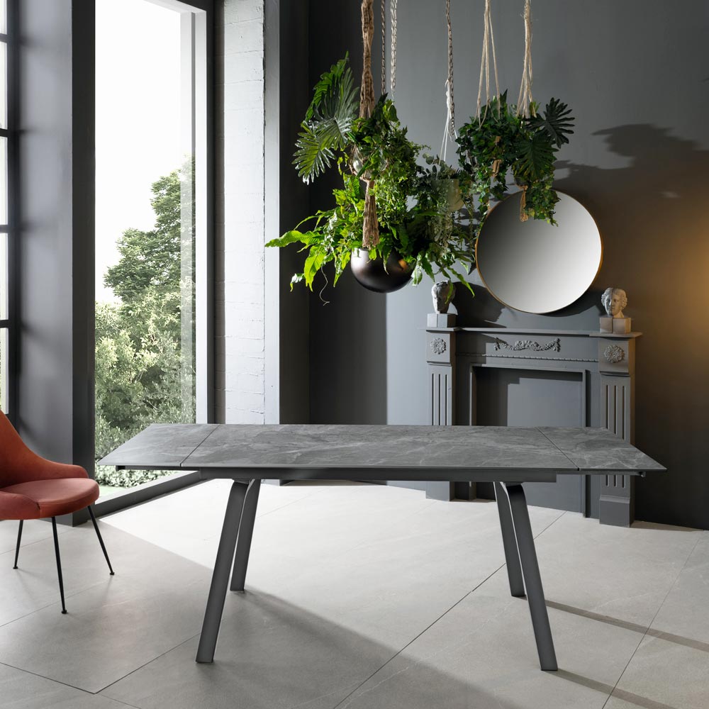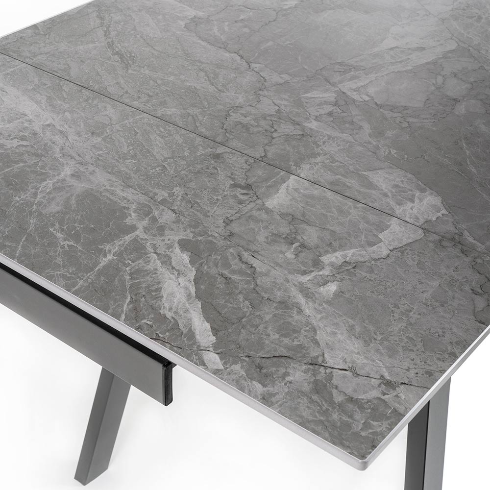 Udtrækkeligt spisebord i sintret sten med marmor- og metaleffekt