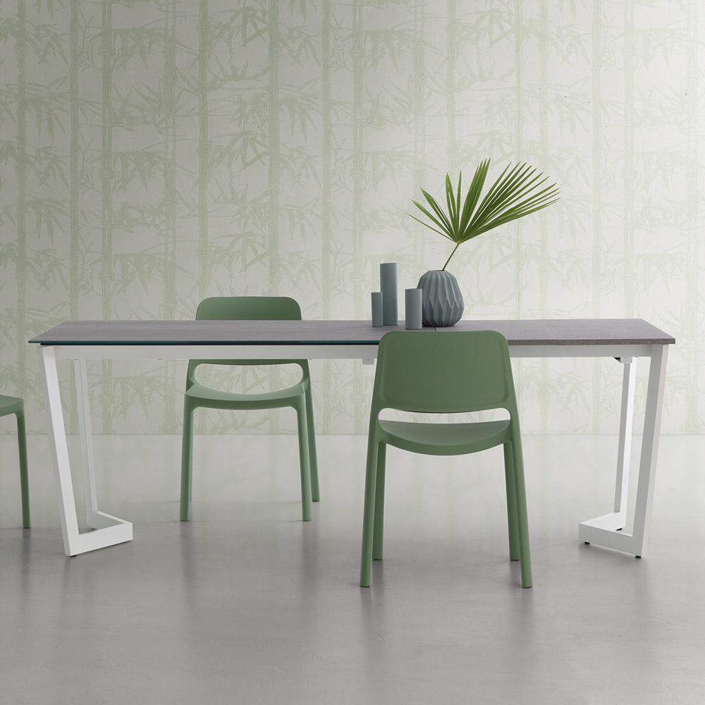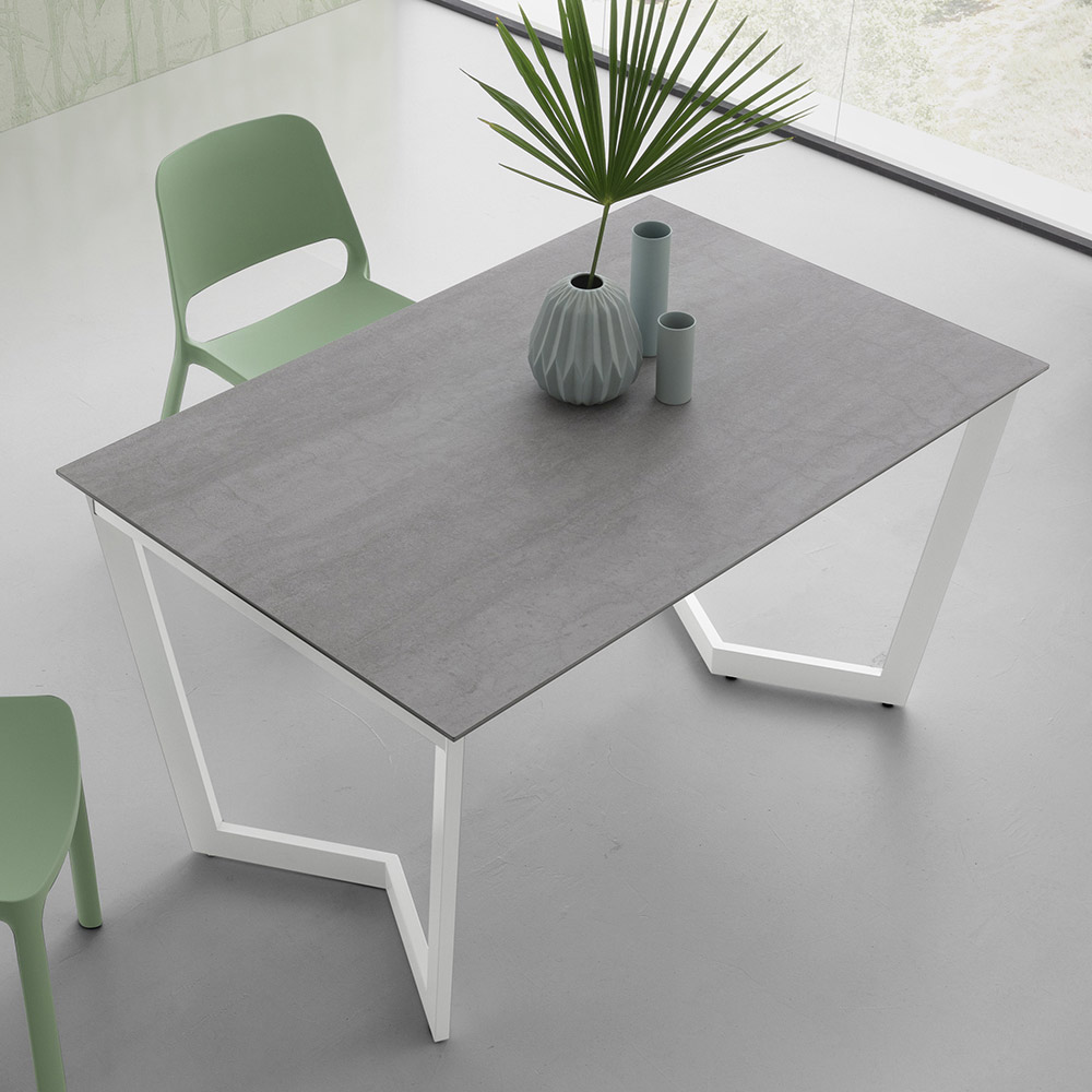 Udtrækkeligt køkkenbord i laminam keramik med metalbund Made in Italy.