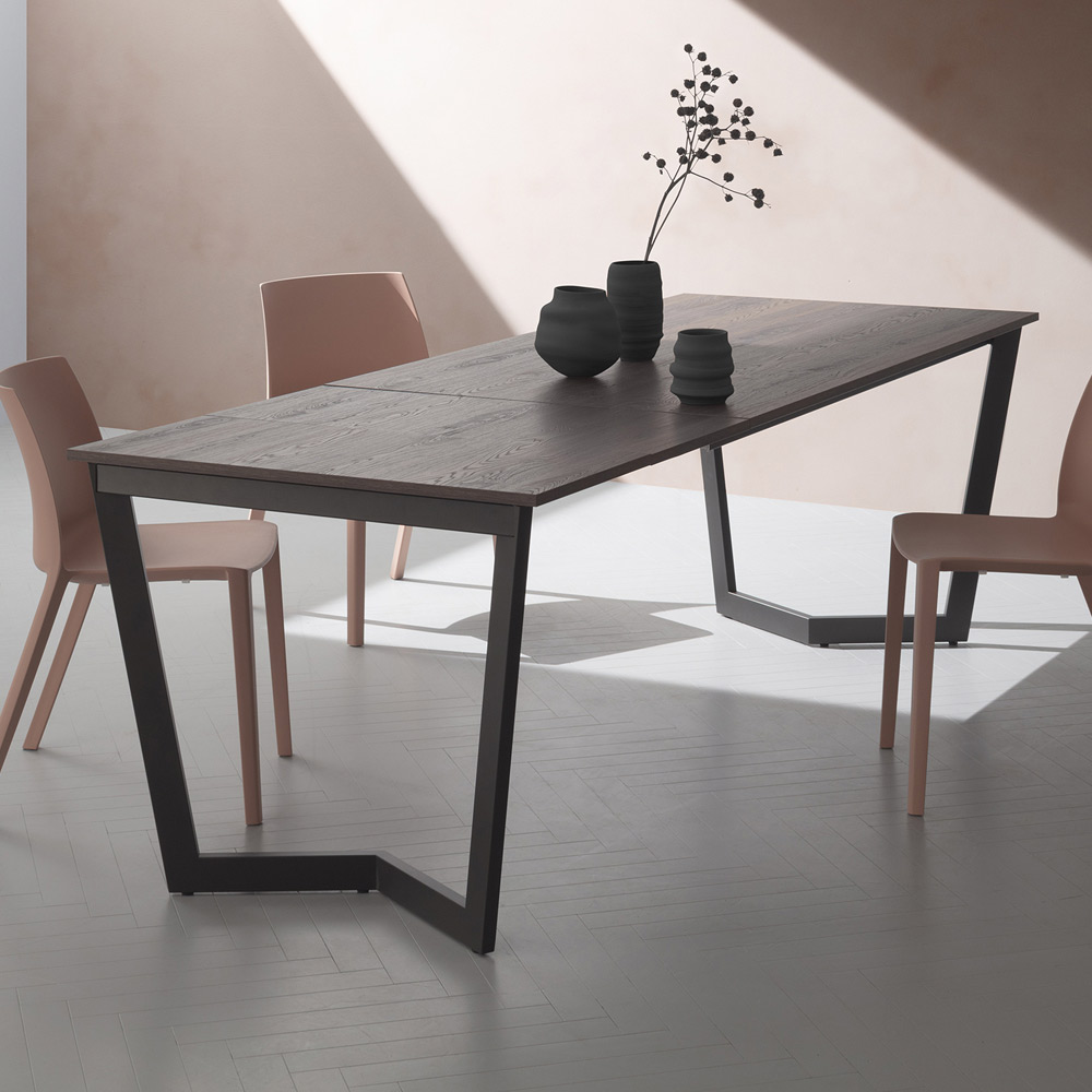 Udtrækbart spisebord op til 238 cm i hpl og malet metal Made in Italy.