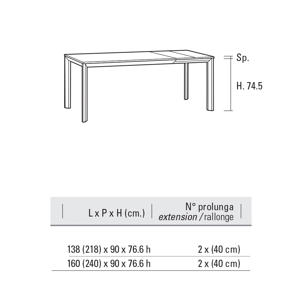 fremstillet i samme materiale som toppen, de tillader dette møbel at strække sig op til en maksimal længde på 240 cm, hvilket skaber