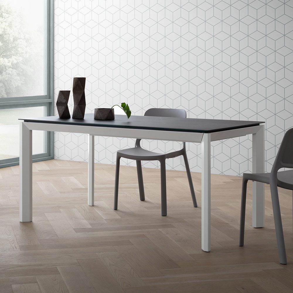 Udtrækbart spisebord op til 240 cm i laminam keramik og aluminium Made in Italy.