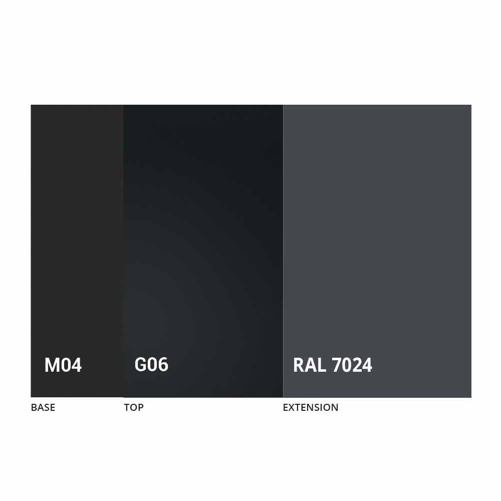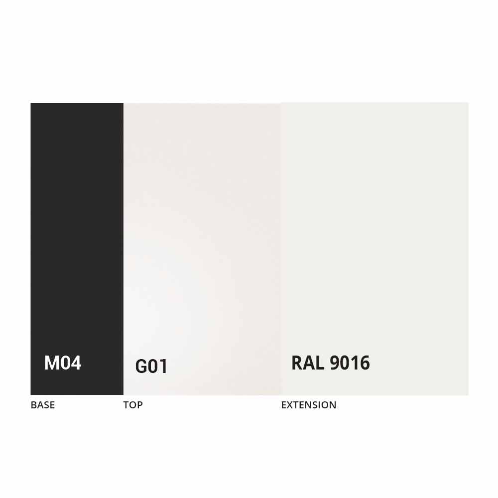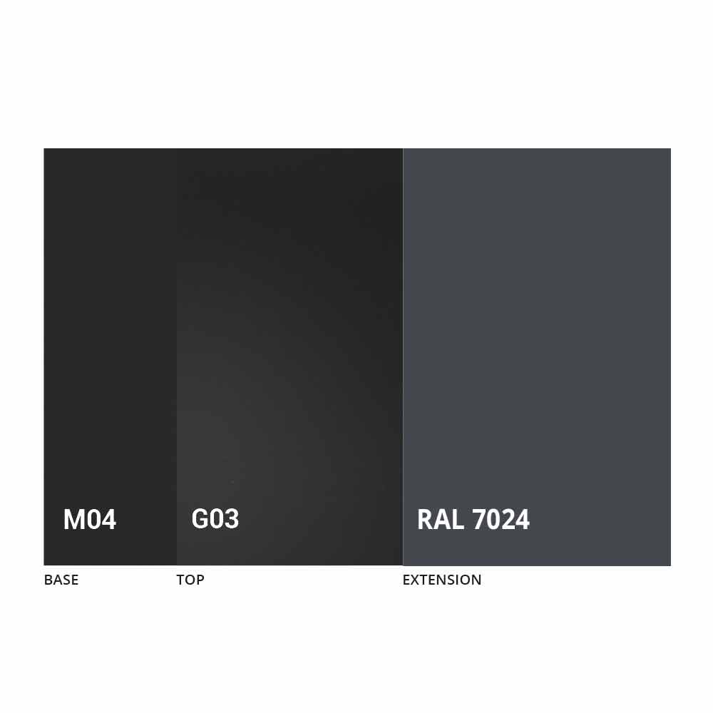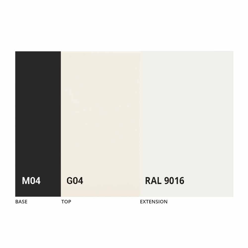 Bordpladen, forlængelsen og bunden af bordet kan tilpasses med forskellige prøvefinisher. For information, kontakt os ved at bruge formularen "