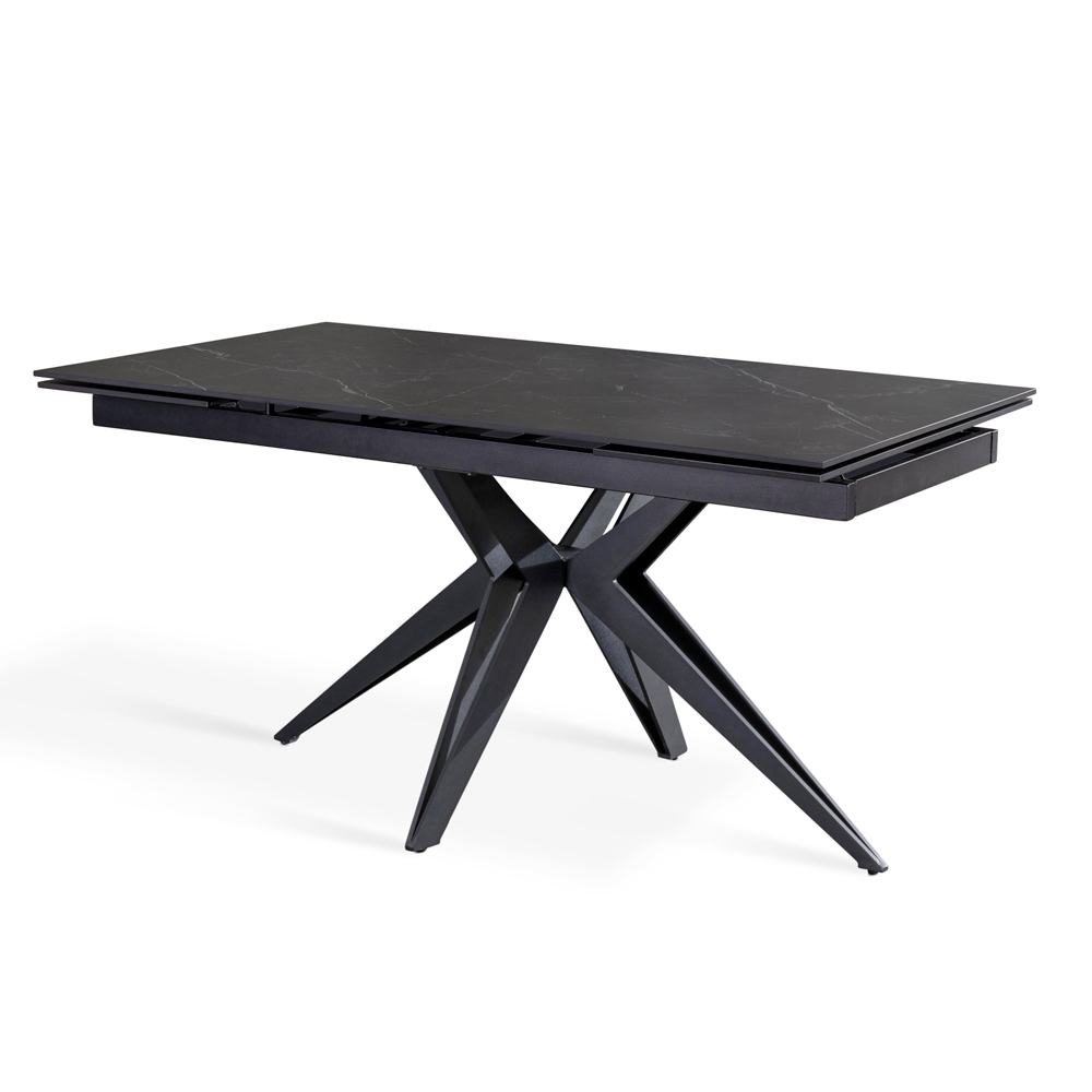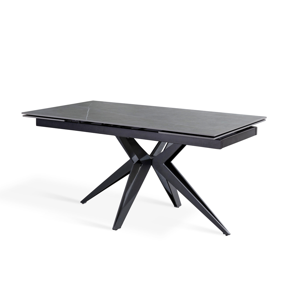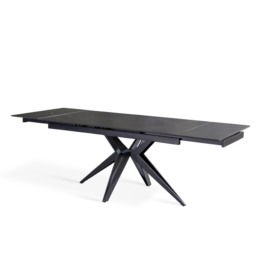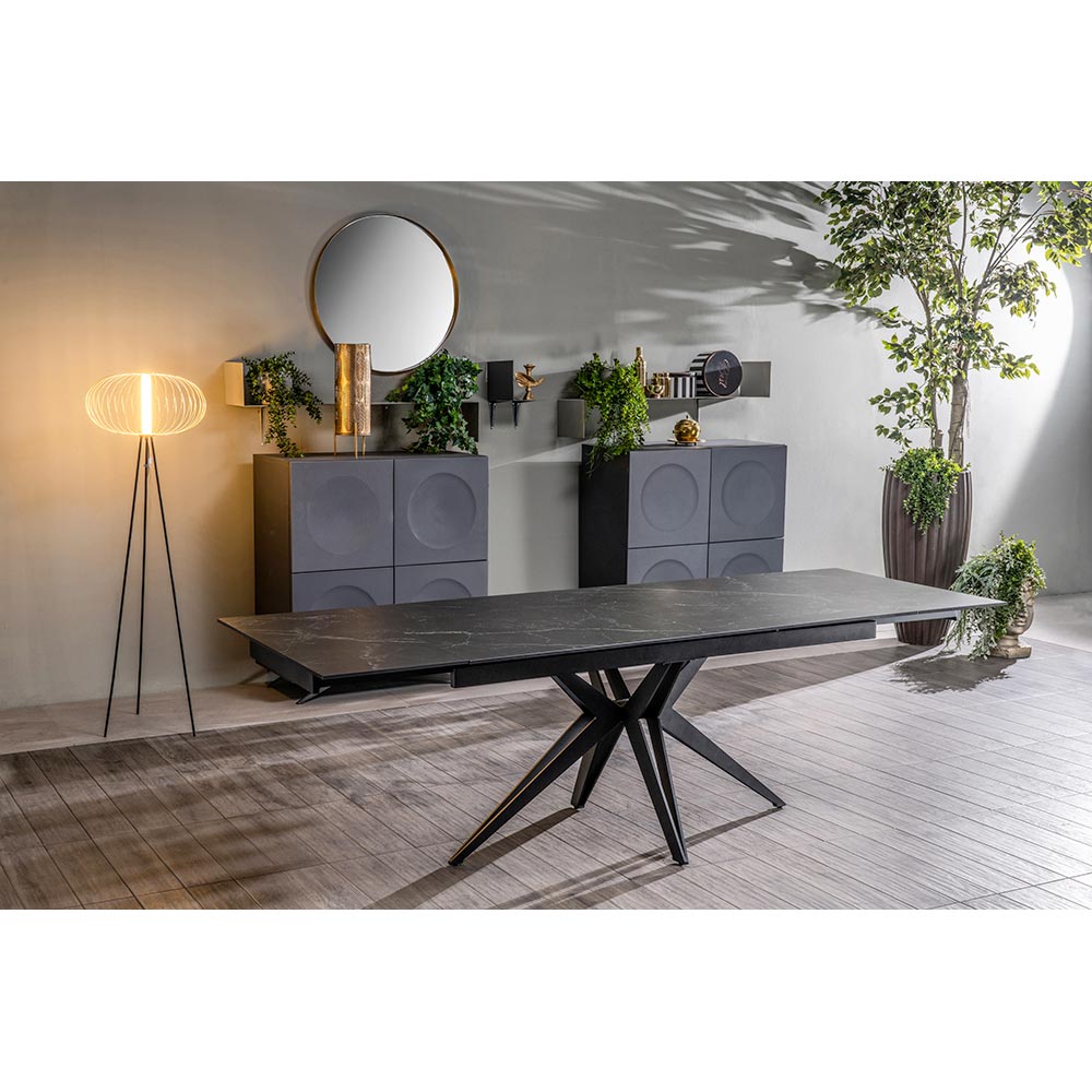 Det, der fanger opmærksomheden, er den udtryksfulde kraft af dette udtrækbare bord i en moderne og industriel stil. Dens design er kendetegnet ved den elegante top lavet af keramik, som smagfuldt matcher den solide metalbund. Det tilbyder mange mulige kombinationer mellem finishen på den rektangulære top og finishen på basen, hvilket tilfredsstillende personligt udtryk og smag og afspejler ånden i den kontekst, hvori den er indsat. Takket være dens udvidelsesmuligheder kan den rumme op til 10 personer og bliver den perfekte allierede til at skabe unikke og varme hyggelige rum.