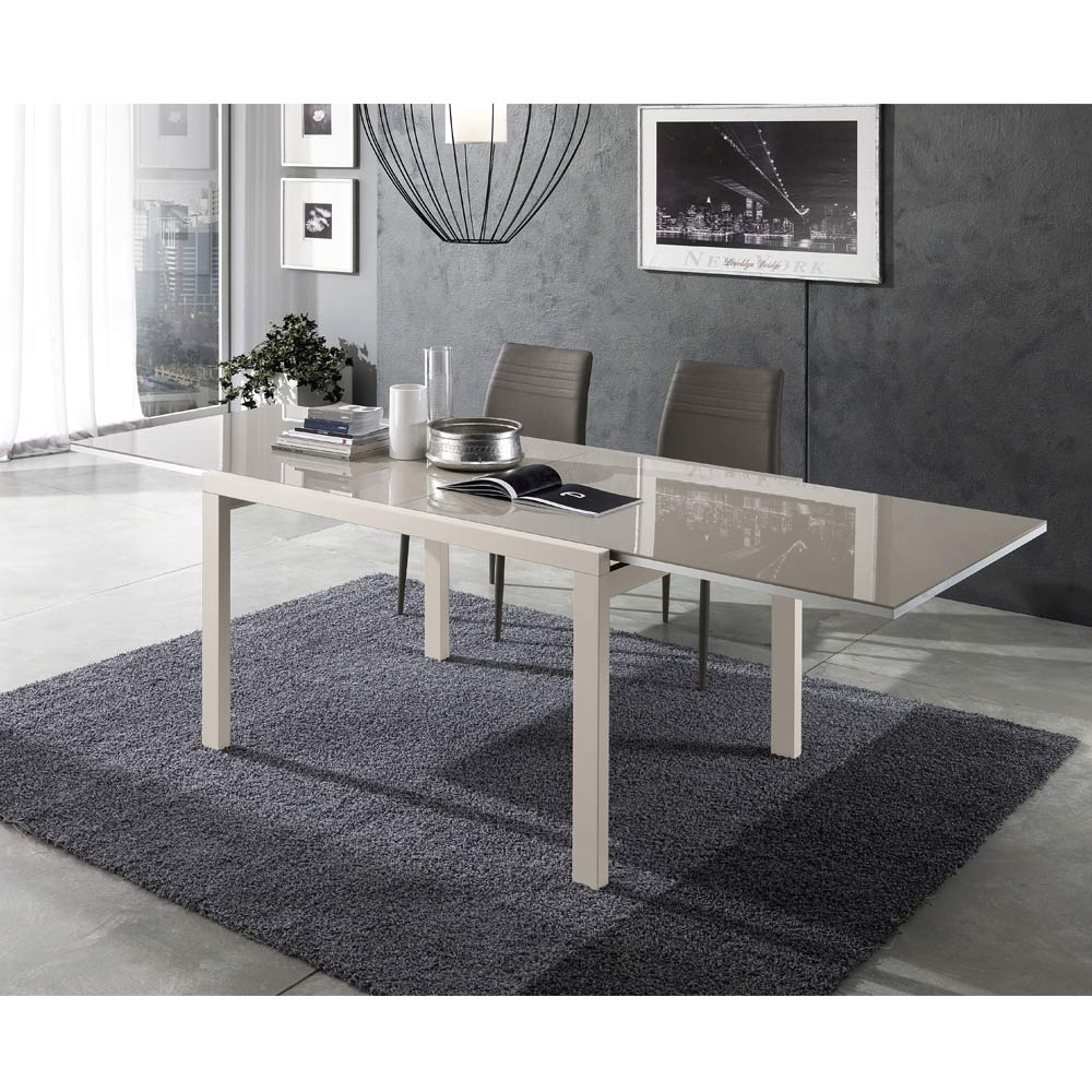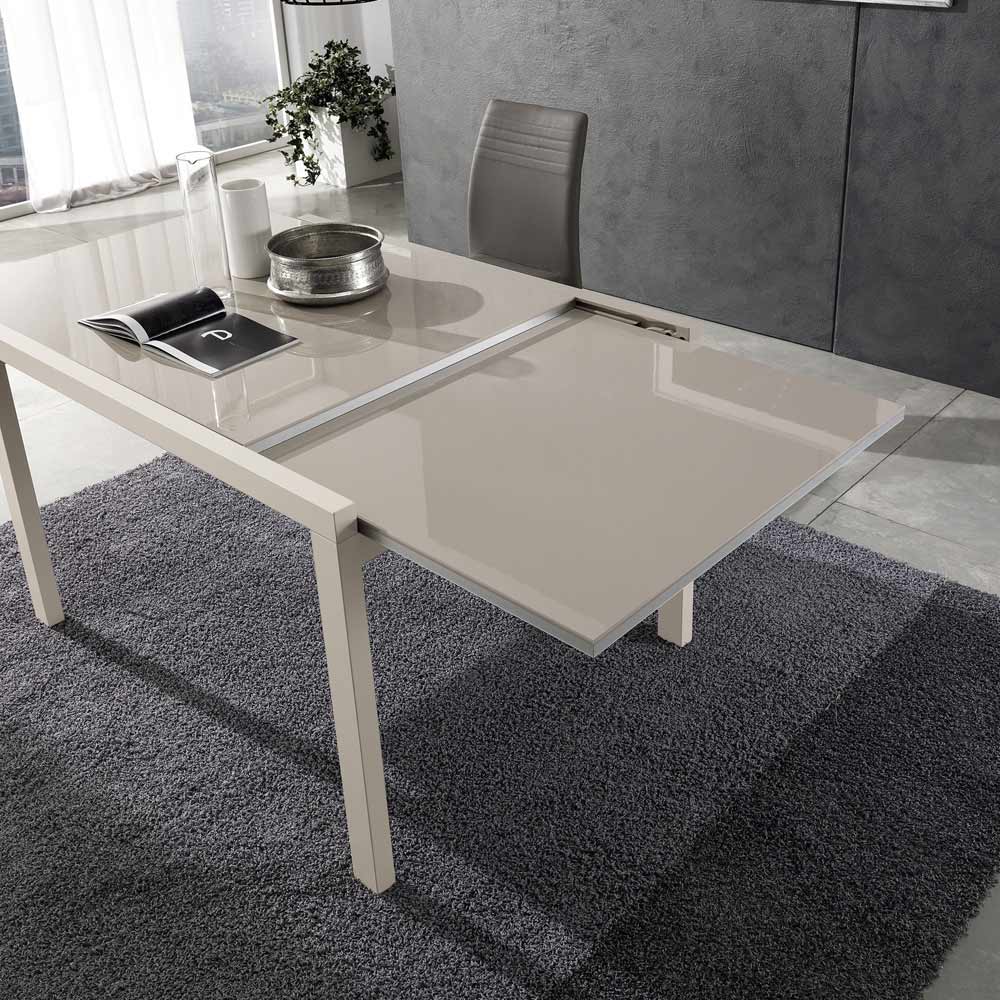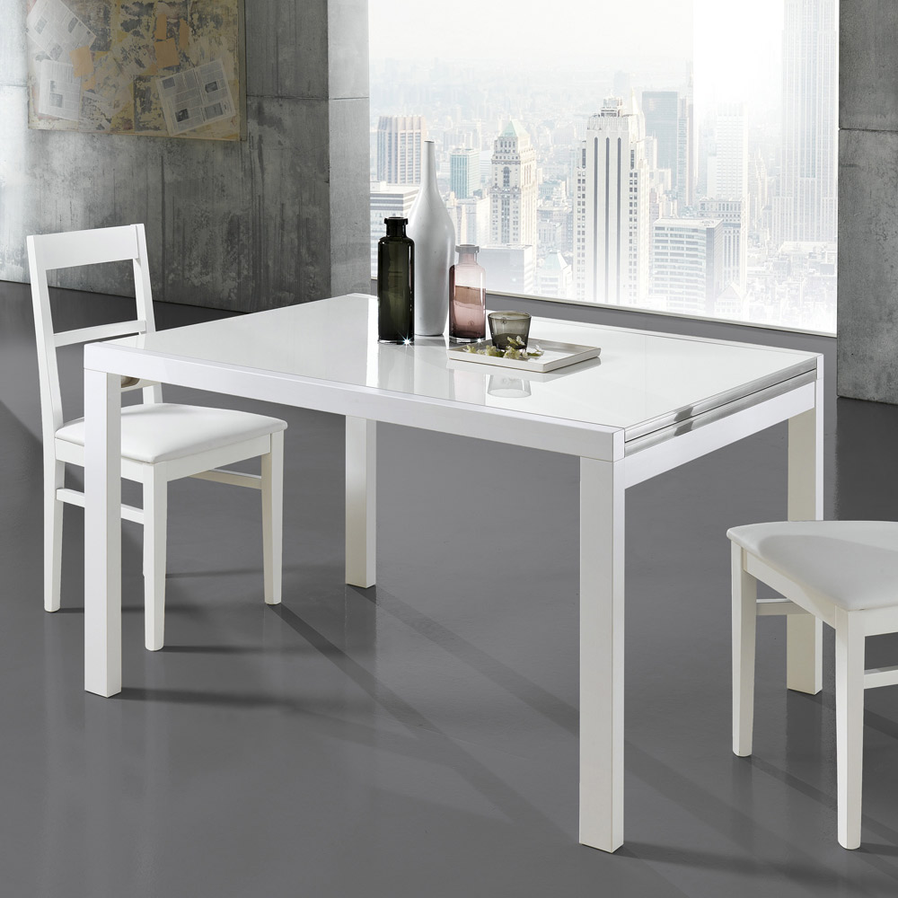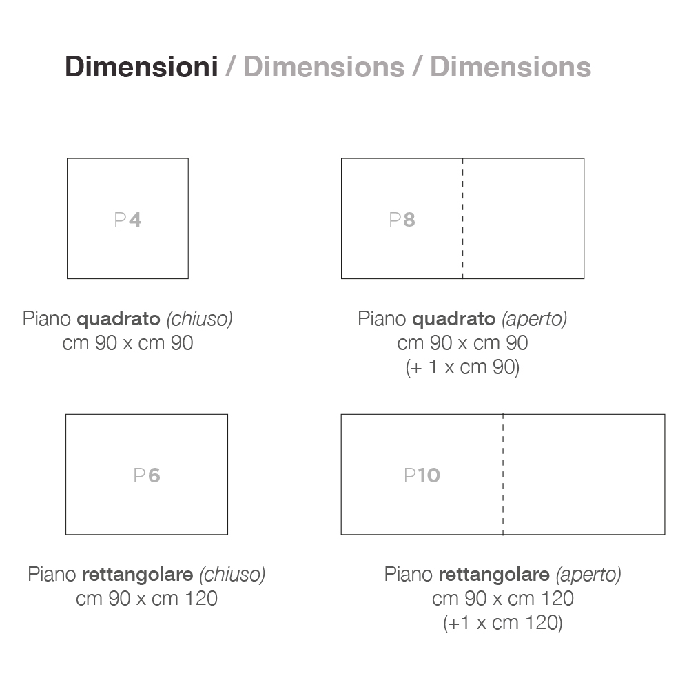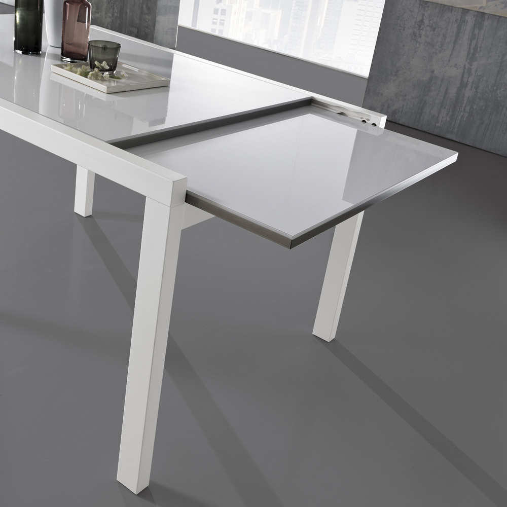 glaseffekt lakeret træplade. Dens praktiske åbningsmekanisme øger overfladen, hvilket gør den i stand til komfortabelt at rumme mange mennesker. Et produkt med en unik stil, der formår strengt at kombinere design, aktualitet og teknologi; hvert enkelt element er stærkt karakteriseret og udstyret med en original og højt defineret personlighed.